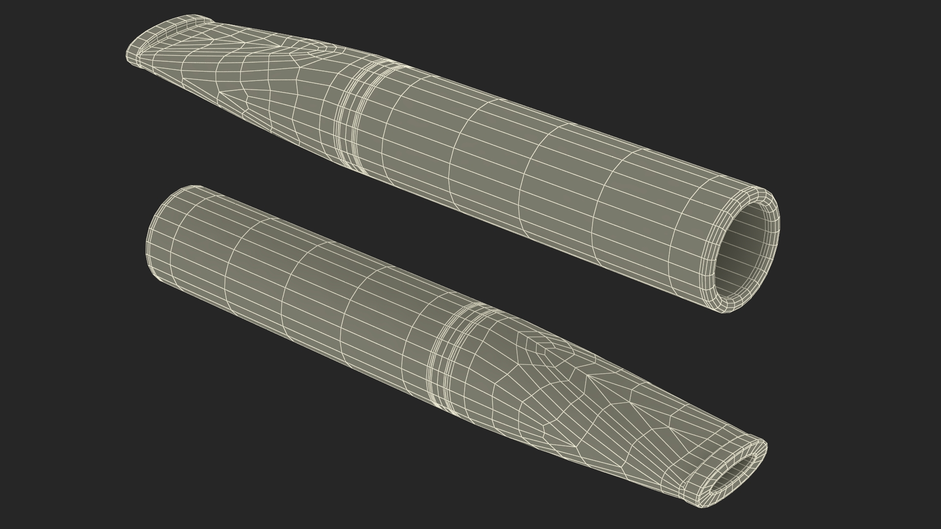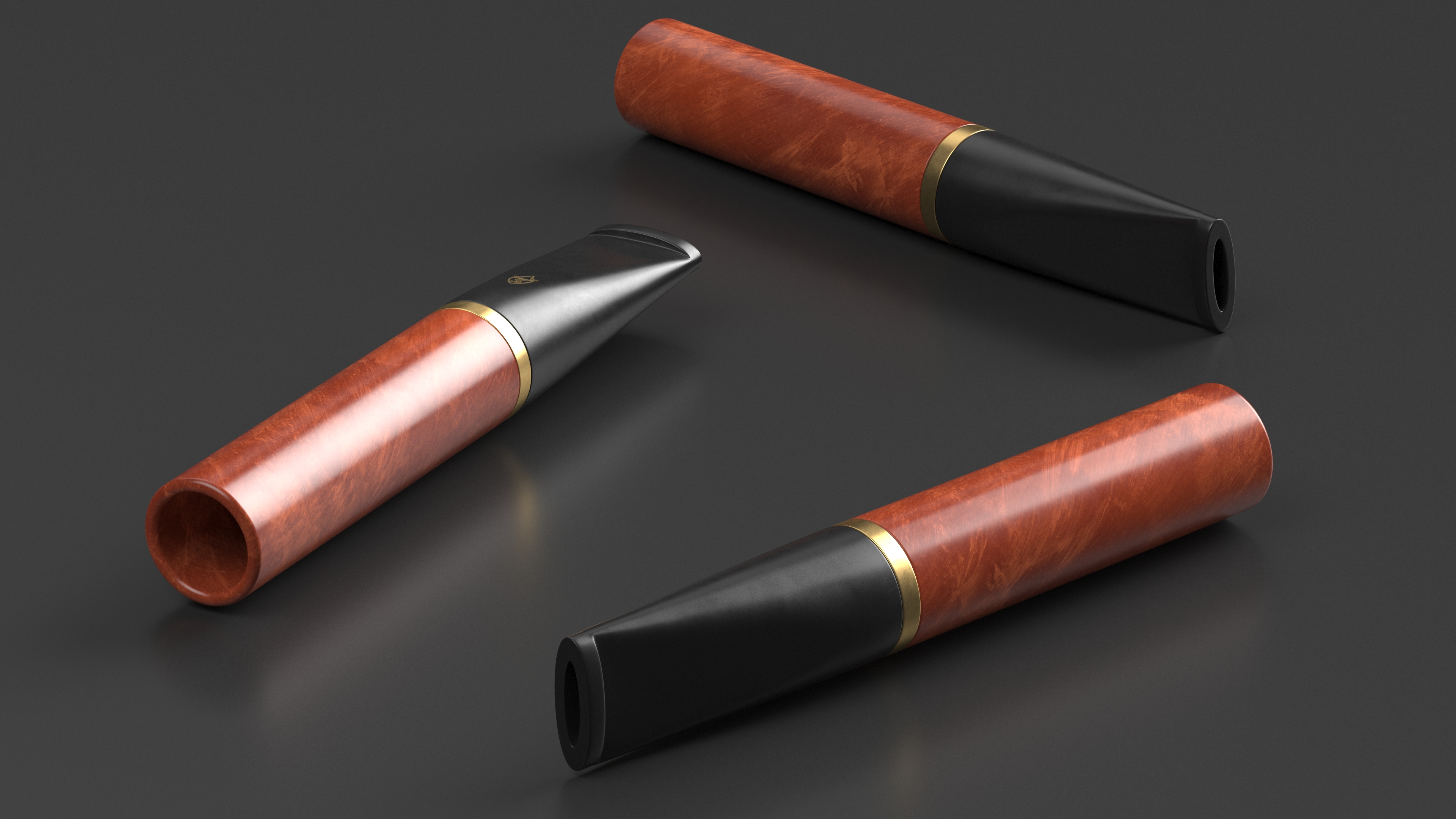 Short Cigarette Holder Dark is a three-dimensional model of small tube-like device designed to hold a cigarette, allowing the smoker to comfortably grip and smoke the cigarette without directly touching it.