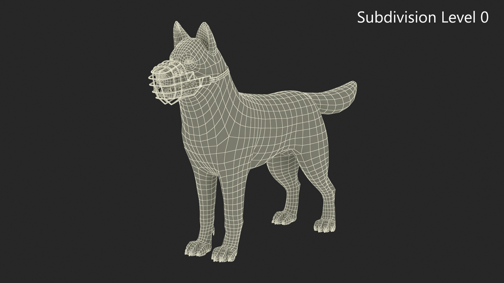Siberian Husky Black and White with Muzzle is a three-dimensional model of dog pet with a dog muzzle that is a pet accessory designed to cover a dog's snout and prevent biting, barking, or chewing.