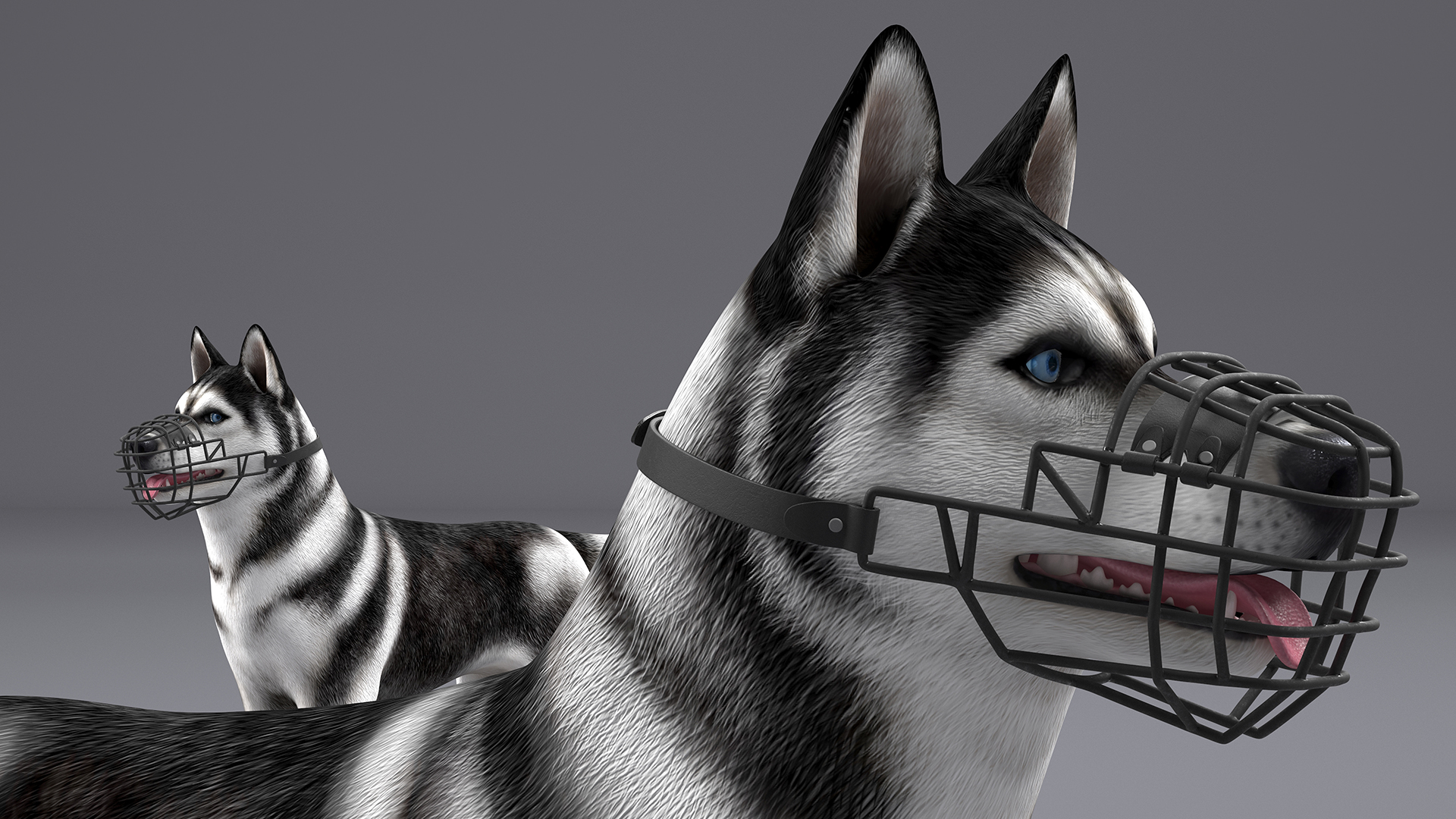Siberian Husky Black and White with Muzzle is a high quality, photo real 3d model that will enhance detail and realism to any of your rendering projects. The model has a fully textured, detailed design that allows for close-up renders, and was originally modeled in 3ds Max 2020 and rendered with V-Ray. Renders have no postprocessing!