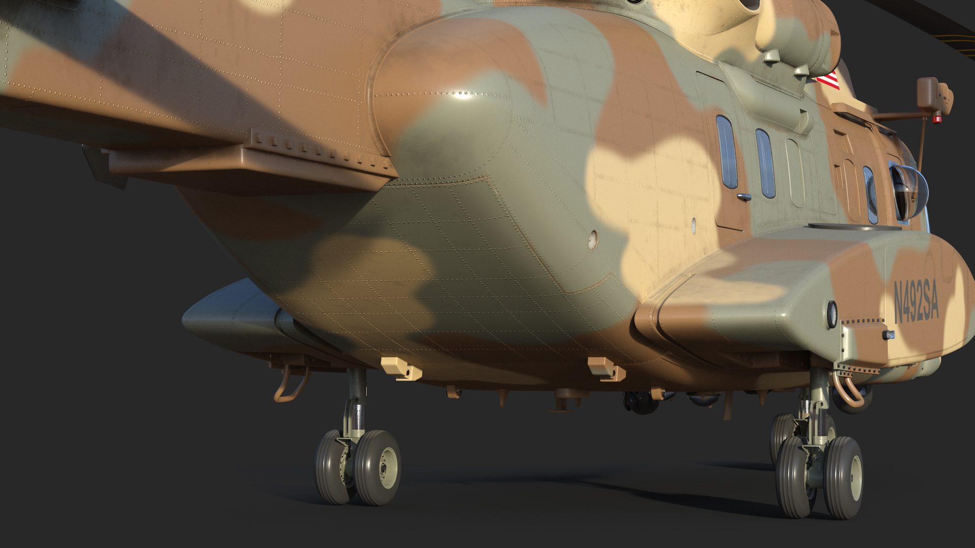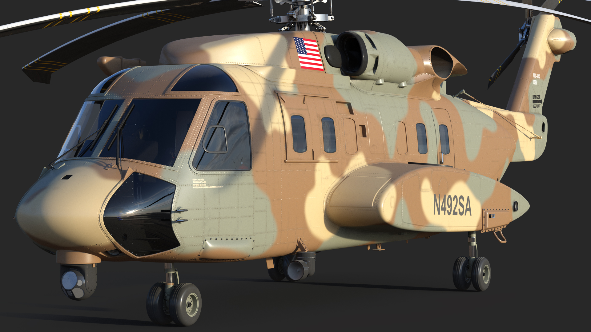 Sikorsky H-92 Superhawk Rigged is fully rigged and is ready to be animated. You can easily position it the way you need or animate it the way your project requires using helpers in 3D Studio Max. See the turntable to get an idea of how rigging works.