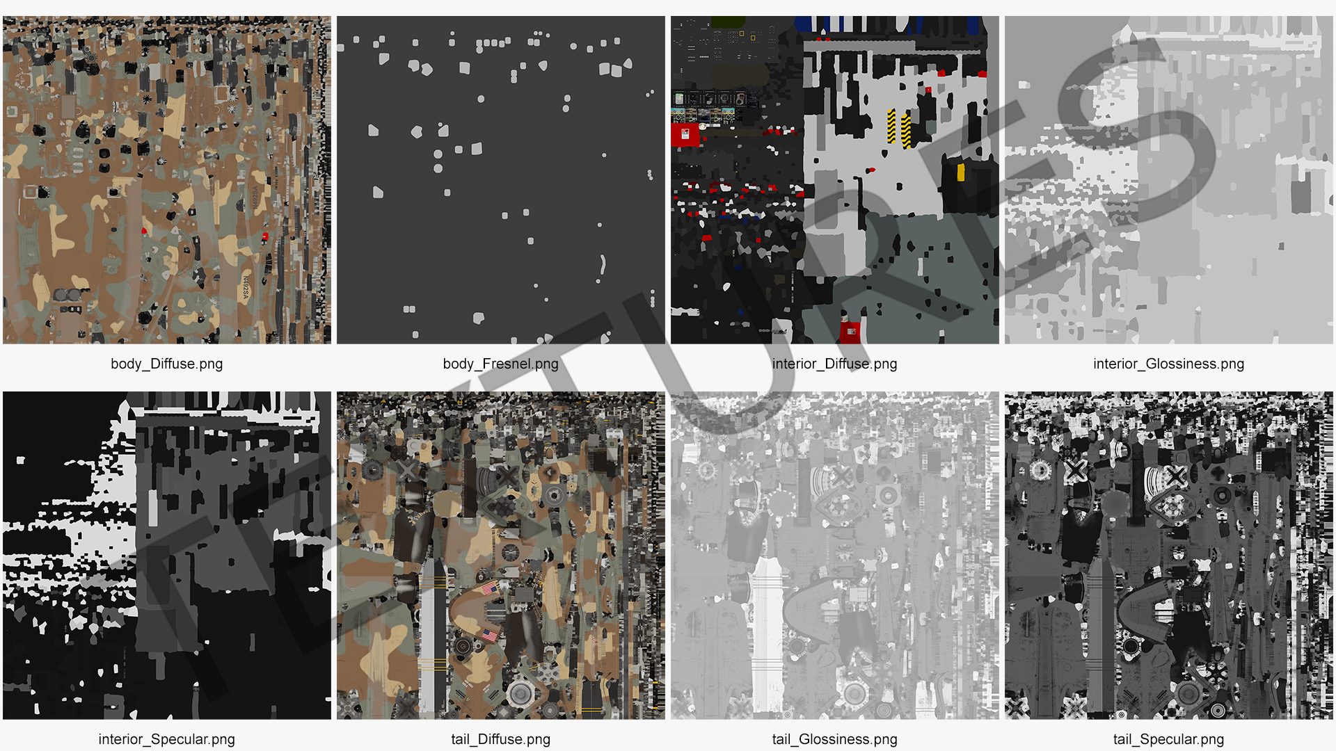 All textures and materials are included and mapped. (All colors can be easily modified.)