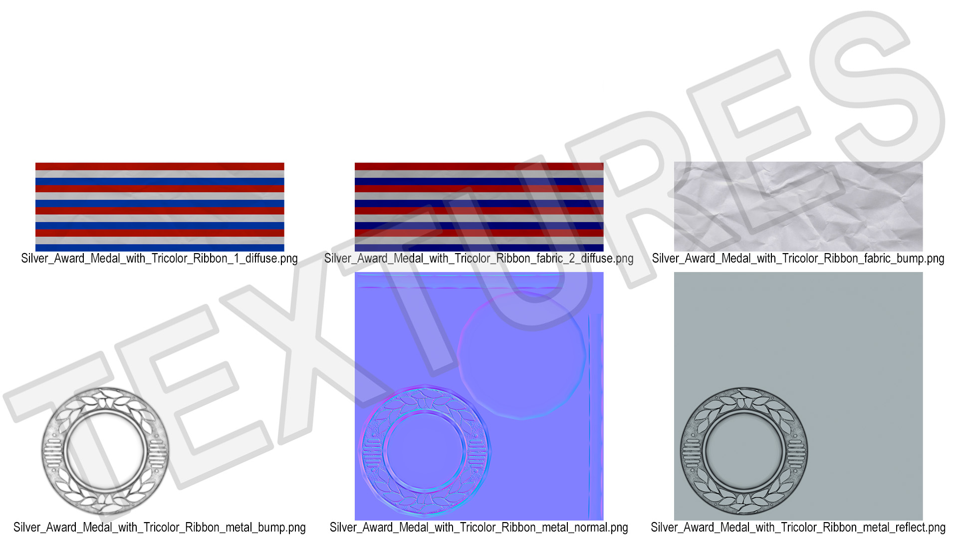 Silver Award Medal with Tricolor Ribbon is a high quality, photo real 3d model that will enhance detail and realism to any of your rendering projects. The model has a fully textured, detailed design that allows for close-up renders, and was originally modeled in 3ds Max 2020 and rendered with V-Ray. Renders have no postprocessing!