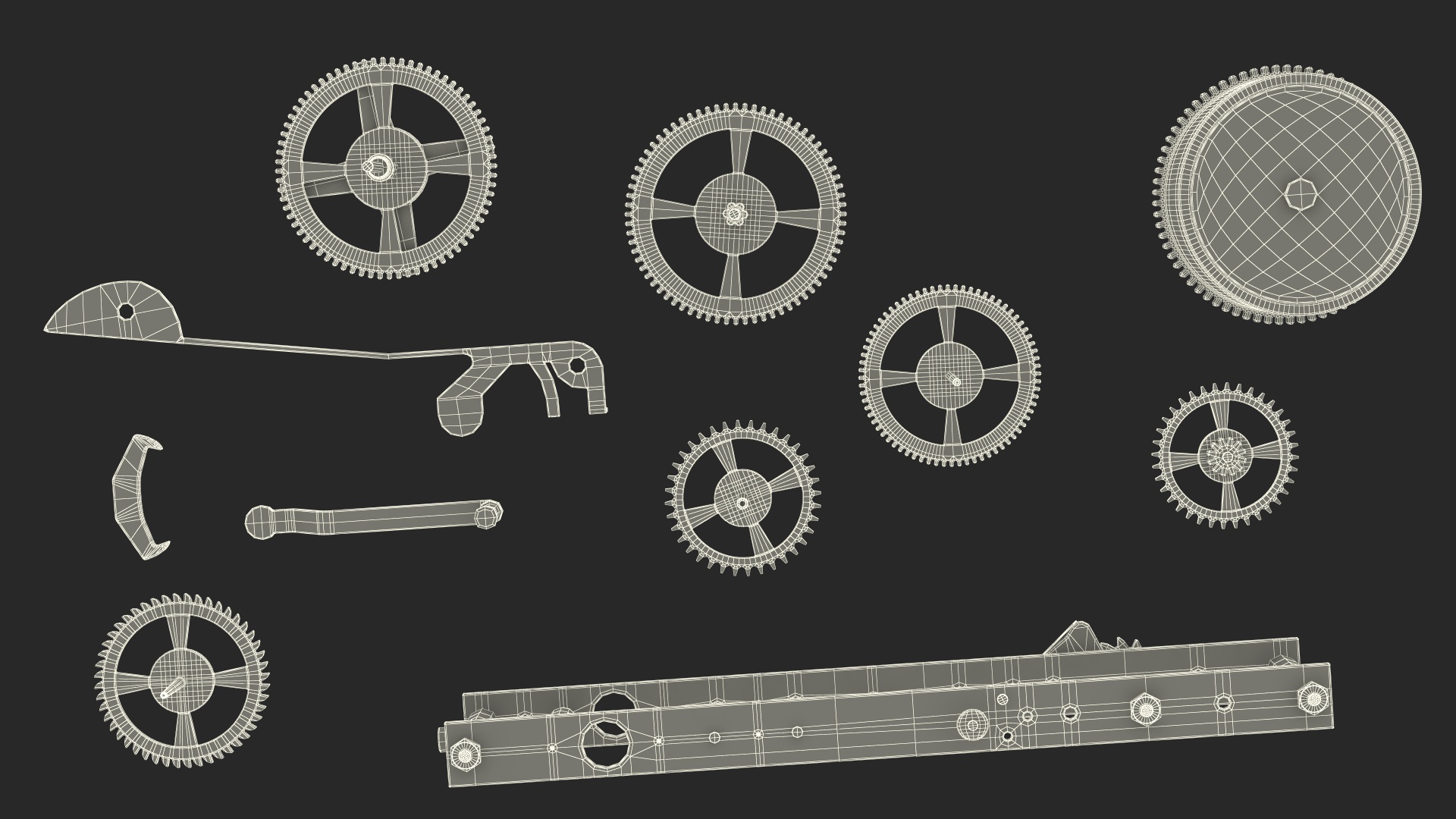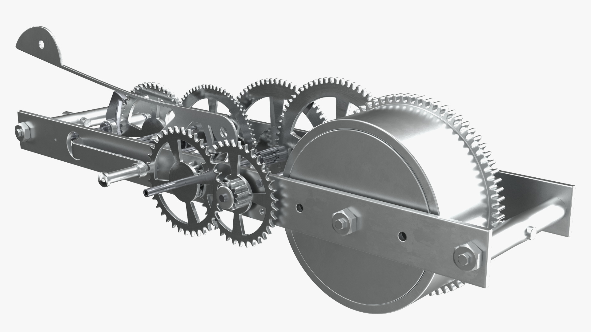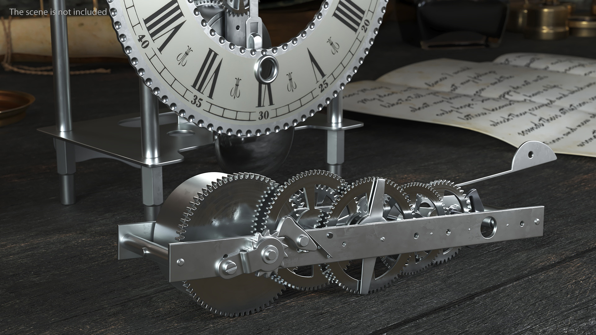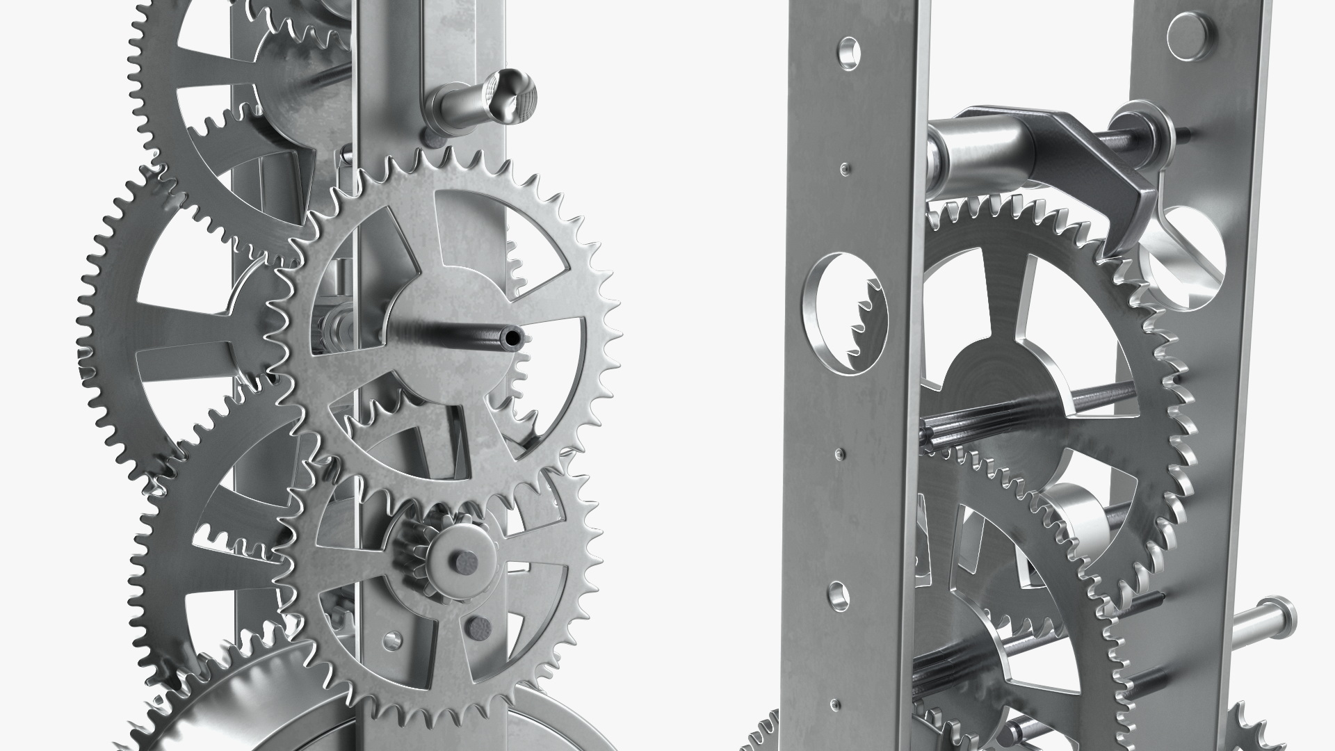 Silver Clockwork Gear is a three-dimensional model of cog gears mechanism with mixed clockwork facilities that is a metallic device, and that is a part of clock, toy, or countdown timer device.
