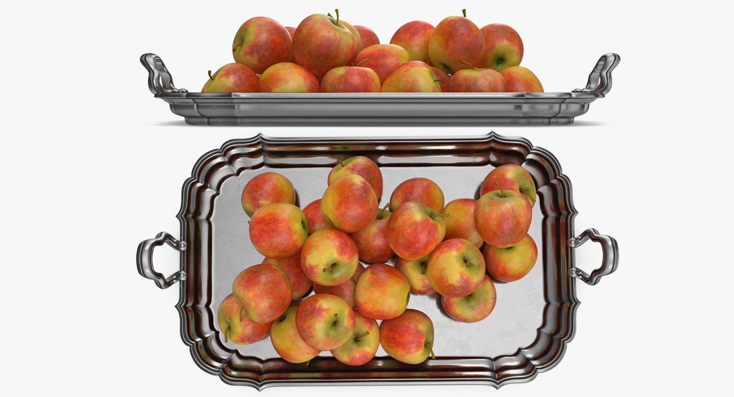 Silver Tray with Apples is a high quality, photo real 3d model that will enhance detail and realism to any of your rendering projects. The model has a fully textured, detailed design that allows for close-up renders, and was originally modeled in 3ds Max 2020 and rendered with V-Ray. Renders have no postprocessing!