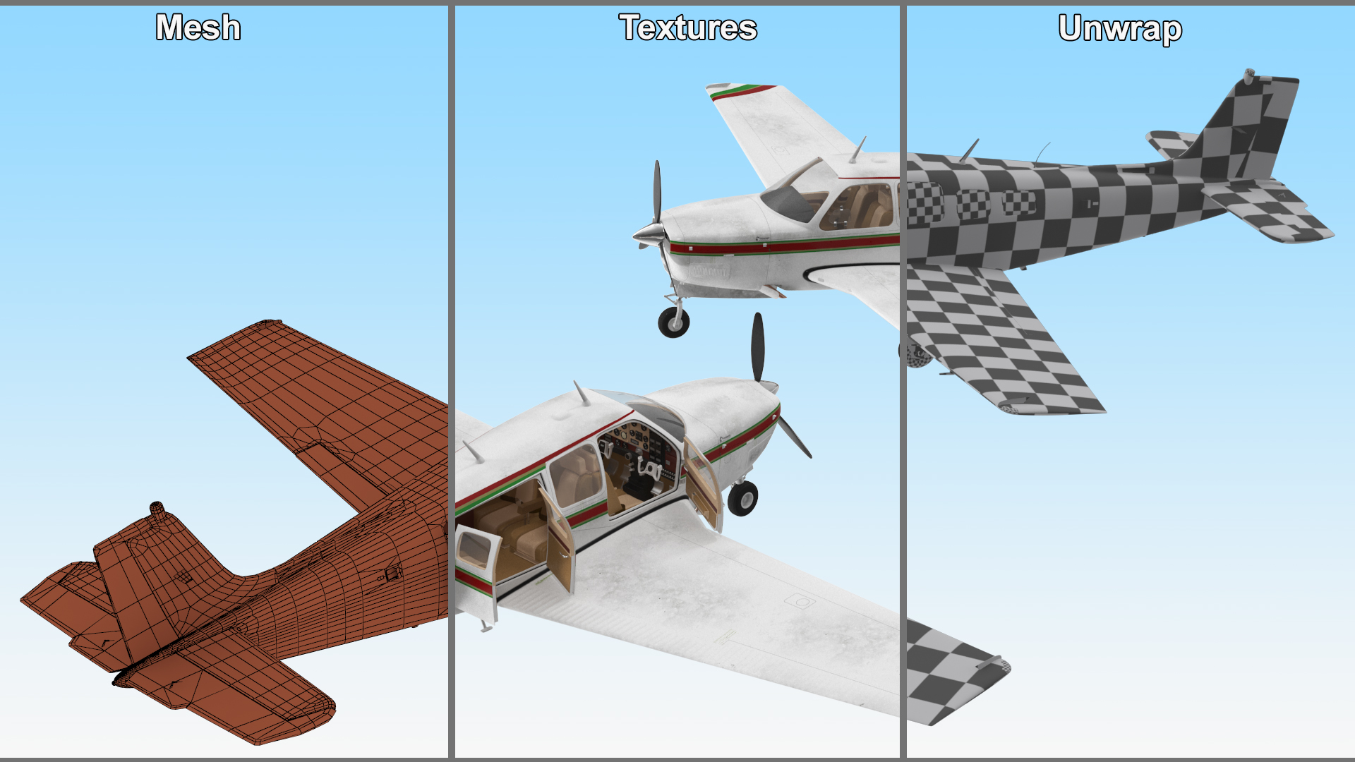 Single Engine Propeller Aircraft Beechcraft Bonanza G 36 is a high quality, photo real 3d model that will enhance detail and realism to any of your rendering projects. The model has a fully textured, detailed design that allows for close-up renders, and was originally modeled in 3ds Max 2020 and rendered with V-Ray. Renders have no postprocessing!