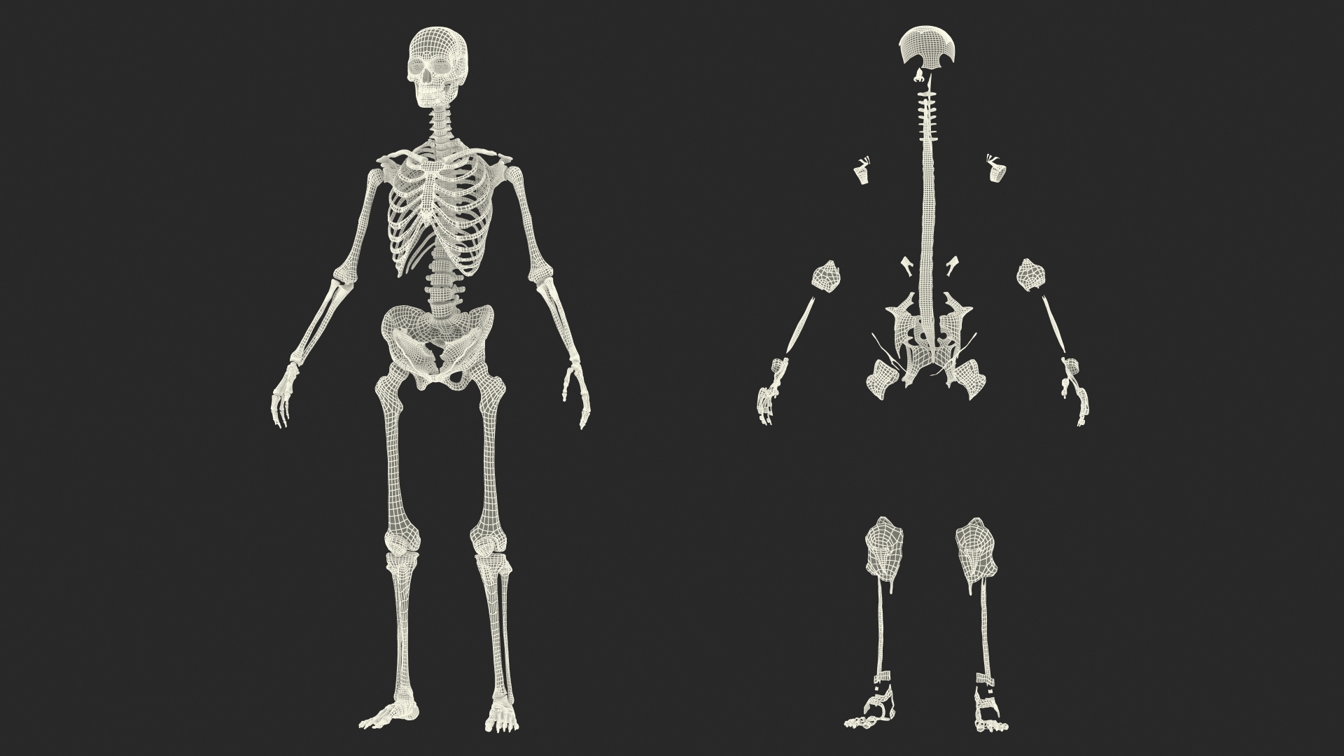 Skeleton with Tissue is a high quality, photo real 3d model that will enhance detail and realism to any of your rendering projects. The model has a fully textured, detailed design that allows for close-up renders, and was originally modeled in 3ds Max 2020 and rendered with V-Ray. Renders have no postprocessing!