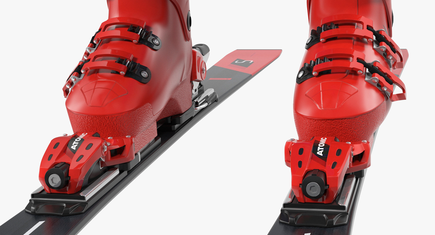 Skier Slide Down Pose athlete with Atomic ski equipment.