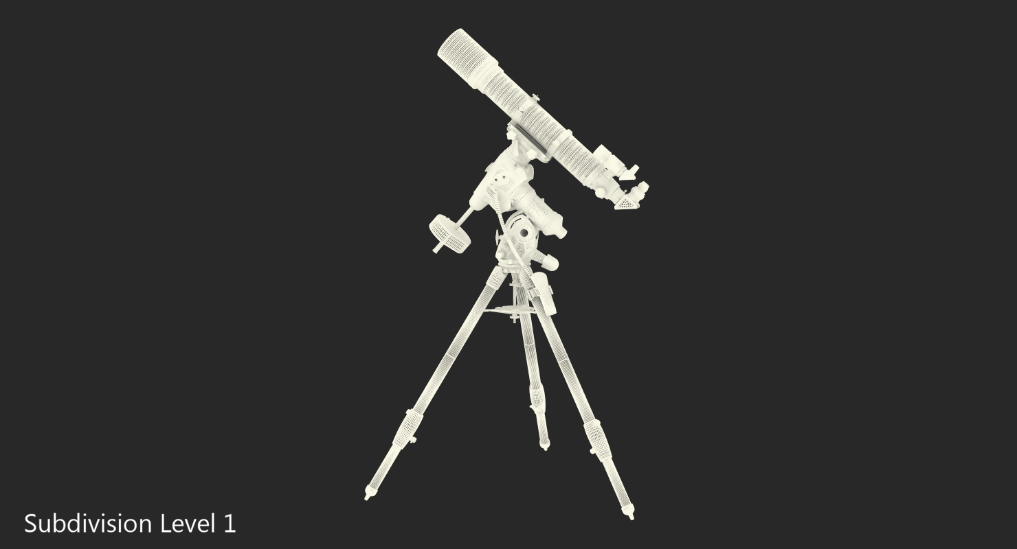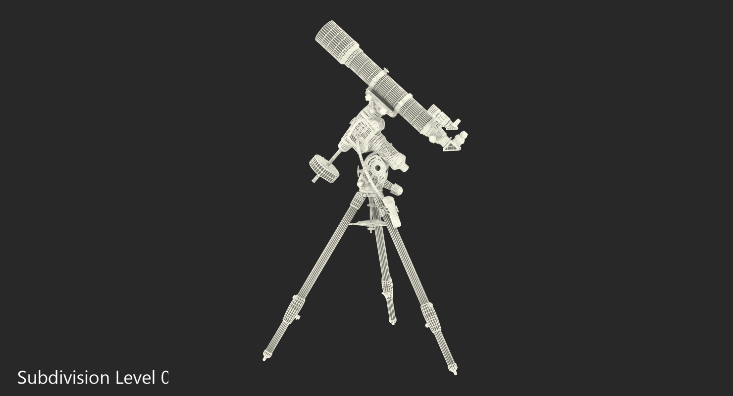 Sky-Watcher 120ED Telescope with Celestron Equatorial Mount Tripod is a high quality, photo real 3d model that will enhance detail and realism to any of your rendering projects. The model has a fully textured, detailed design that allows for close-up renders, and was originally modeled in 3ds Max 2020 and rendered with V-Ray. Renders have no postprocessing!