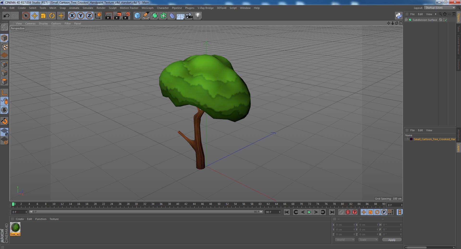 Small Cartoon Tree Crooked Handpaint Texture is a high quality, photo real 3d model that will enhance detail and realism to any of your rendering projects. The model has a fully textured, detailed design that allows for close-up renders, and was originally modeled in 3ds Max 2020 and rendered with V-Ray. Renders have no postprocessing!