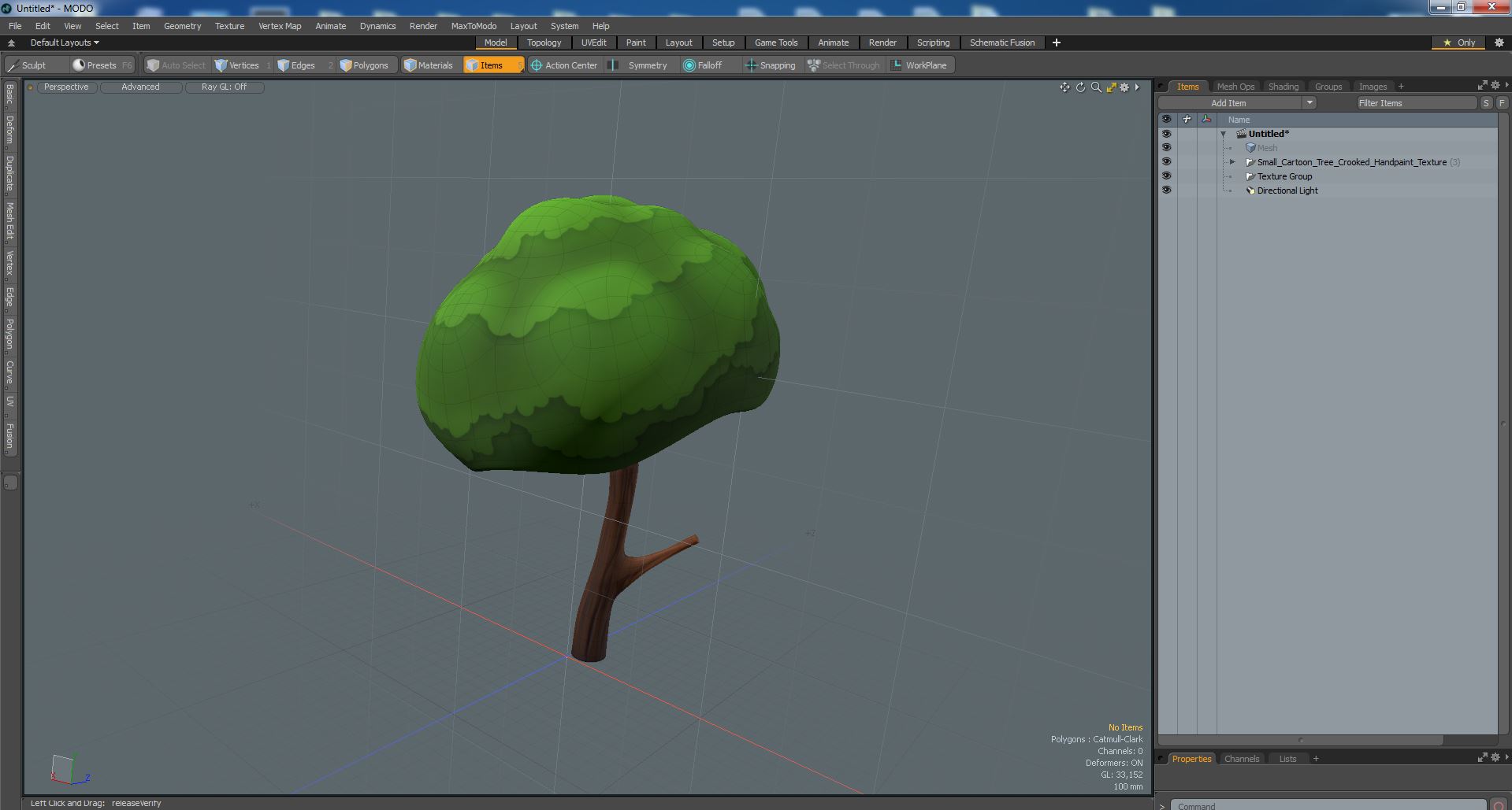 Small Cartoon Tree Crooked Handpaint Texture is a three-dimensional model of cartoon style (primitive, casual or simplified style) tree which is a widespread, well known, and popular component (prop) of landsсape type environment.