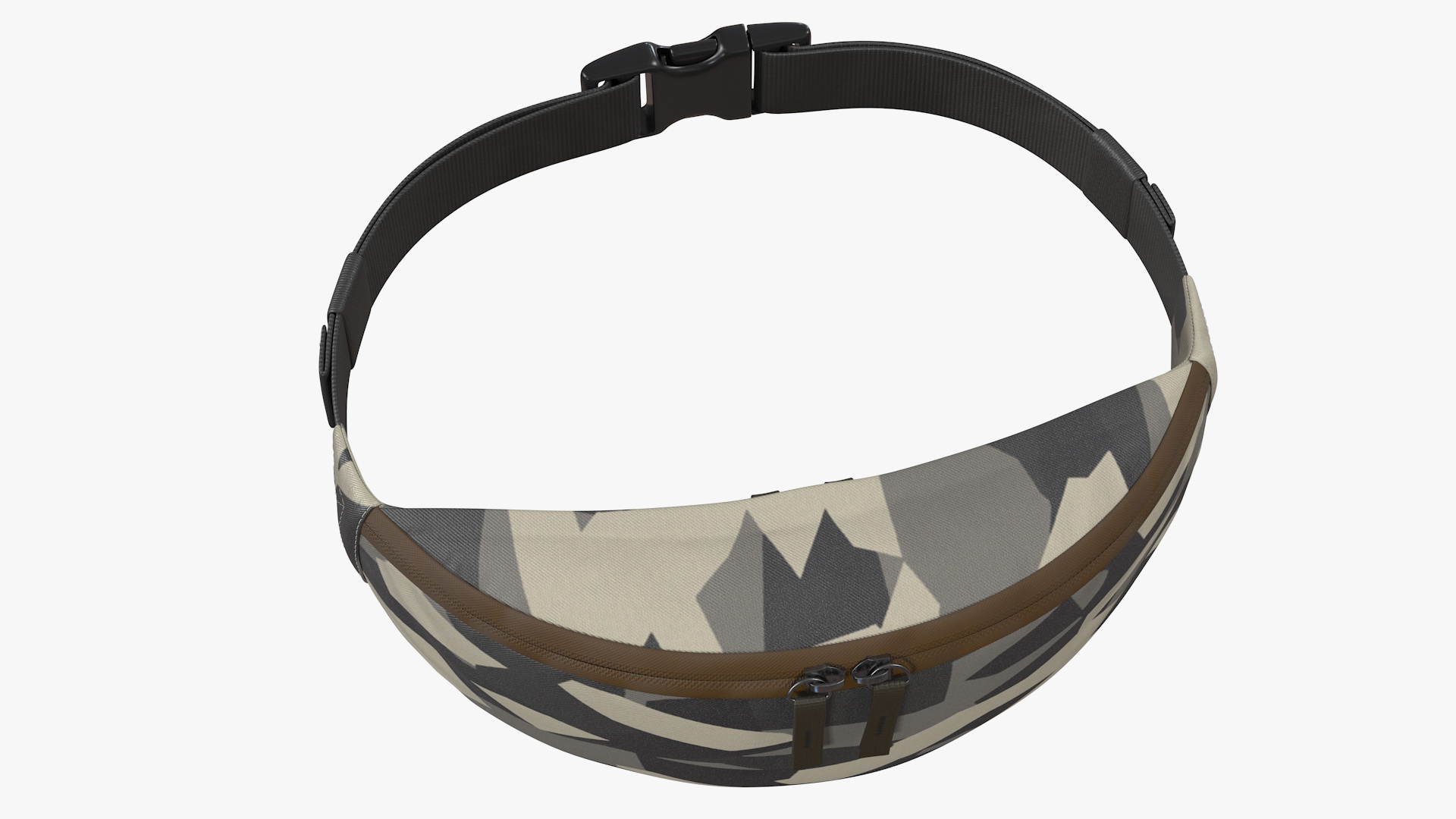 A sportswear camo hip pack money carrier shopping, business travel, or sport clothing wear accessory.