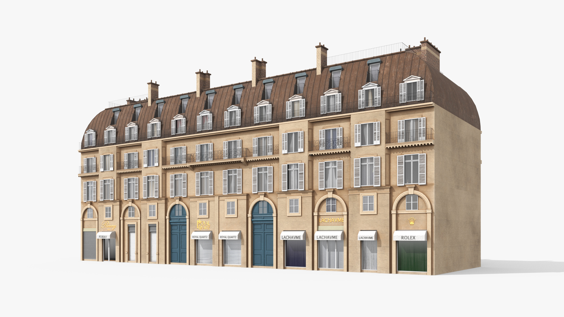 Small Historical Building is a three-dimensional model of French style architecture specimen that is defined by its elegant style buildings from the 19th century, characterized by uniform facades, wrought-iron balconies, and mansard roofs.