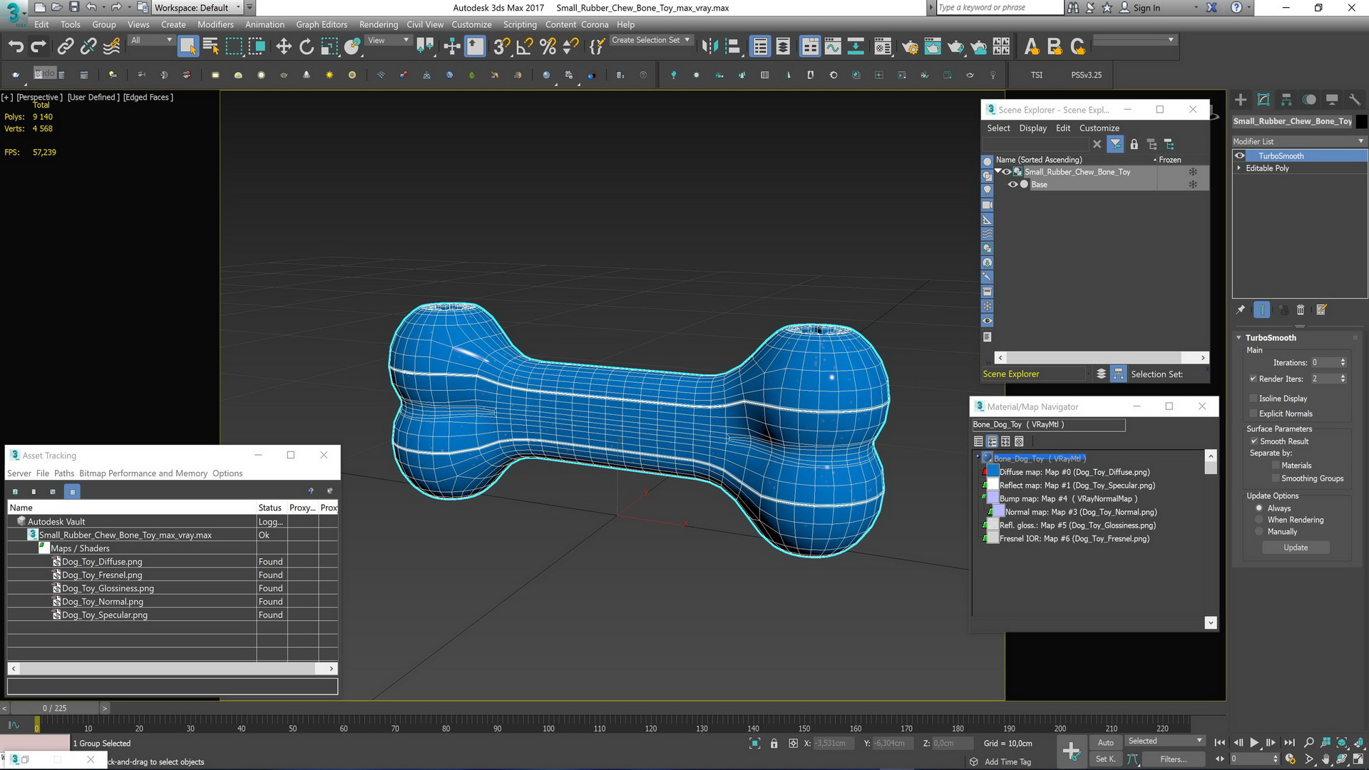 Small Rubber Chew Bone Toy is a high quality, photo real 3d model that will enhance detail and realism to any of your rendering projects. The model has a fully textured, detailed design that allows for close-up renders, and was originally modeled in 3ds Max 2020 and rendered with V-Ray. Renders have no postprocessing!