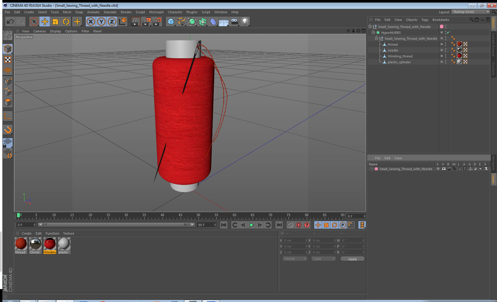 Small Sewing Thread with Needle is a high quality, photo real 3d model that will enhance detail and realism to any of your rendering projects. The model has a fully textured, detailed design that allows for close-up renders, and was originally modeled in 3ds Max 2020 and rendered with V-Ray. Renders have no postprocessing!