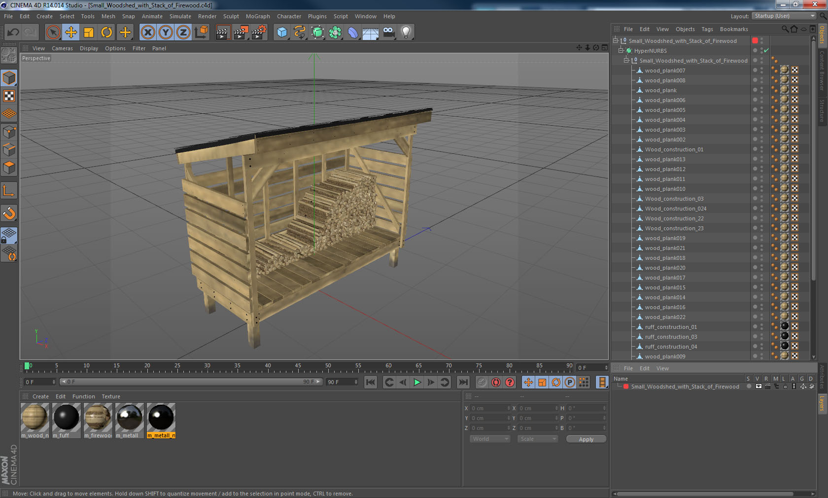 Small Woodshed with Stack of Firewood is a high quality, photo real 3d model that will enhance detail and realism to any of your rendering projects. The model has a fully textured, detailed design that allows for close-up renders, and was originally modeled in 3ds Max 2020 and rendered with V-Ray. Renders have no postprocessing!