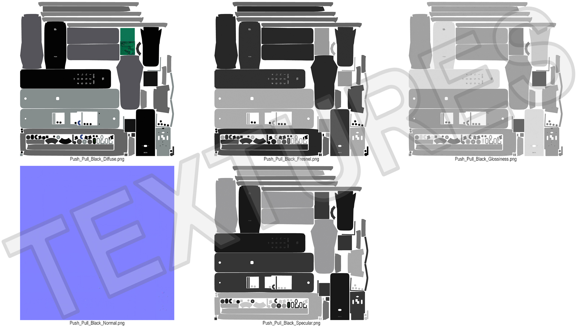 All textures and materials are included and mapped. (All colors can be easily modified.)