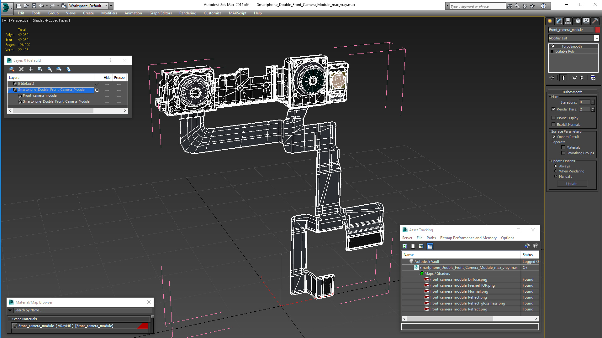 Smartphone Double Front Camera Module is a high quality, photo real 3d model that will enhance detail and realism to any of your rendering projects. The model has a fully textured, detailed design that allows for close-up renders, and was originally modeled in 3ds Max 2020 and rendered with V-Ray. Renders have no postprocessing!