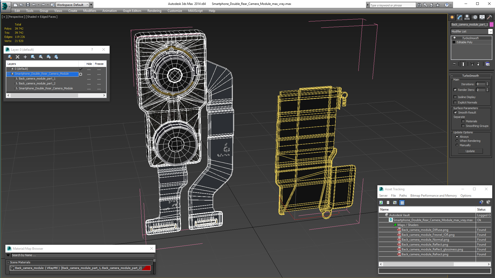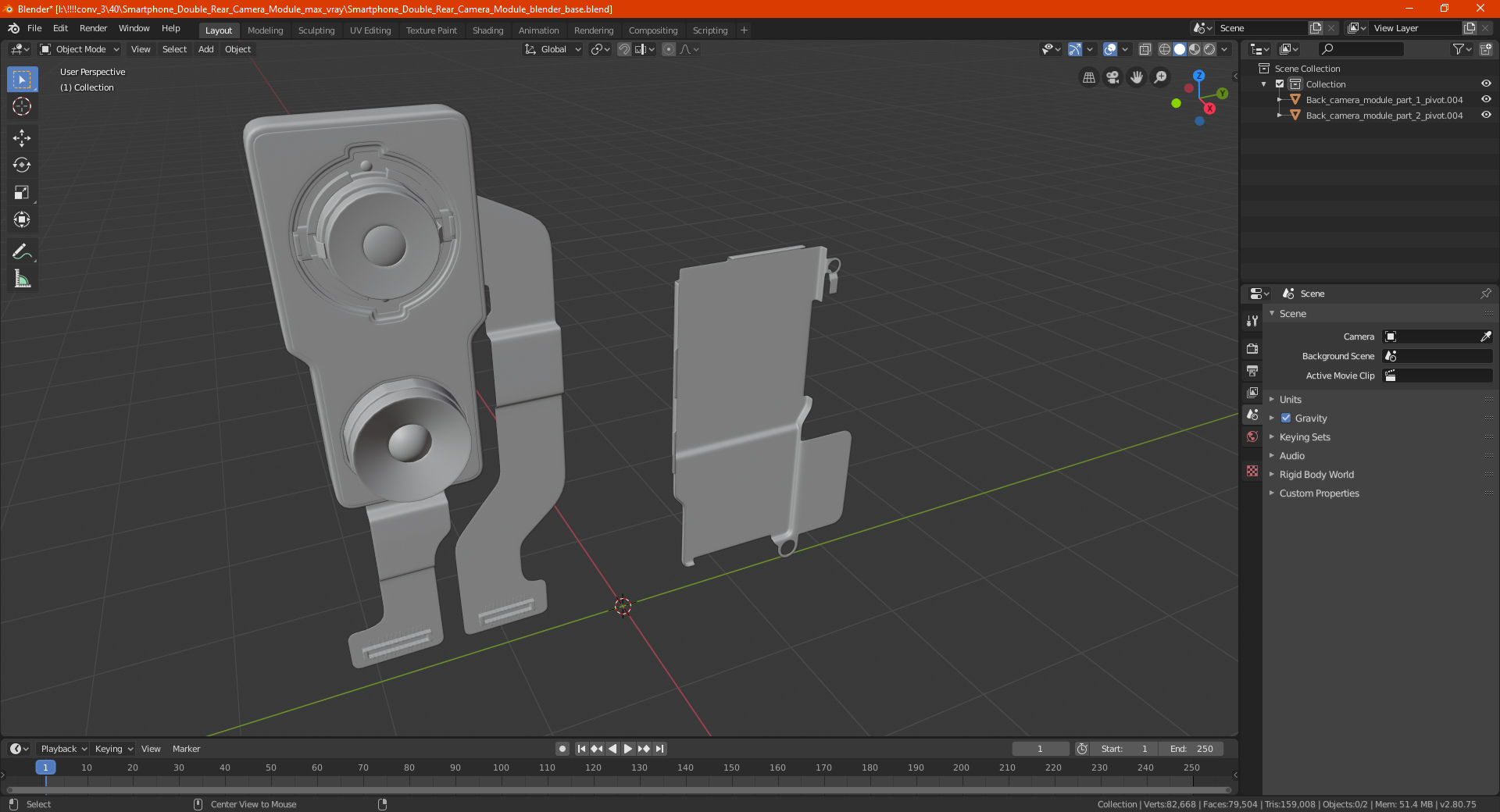 Smartphone Double Rear Camera Module is a high quality, photo real 3d model that will enhance detail and realism to any of your rendering projects. The model has a fully textured, detailed design that allows for close-up renders, and was originally modeled in 3ds Max 2020 and rendered with V-Ray. Renders have no postprocessing!