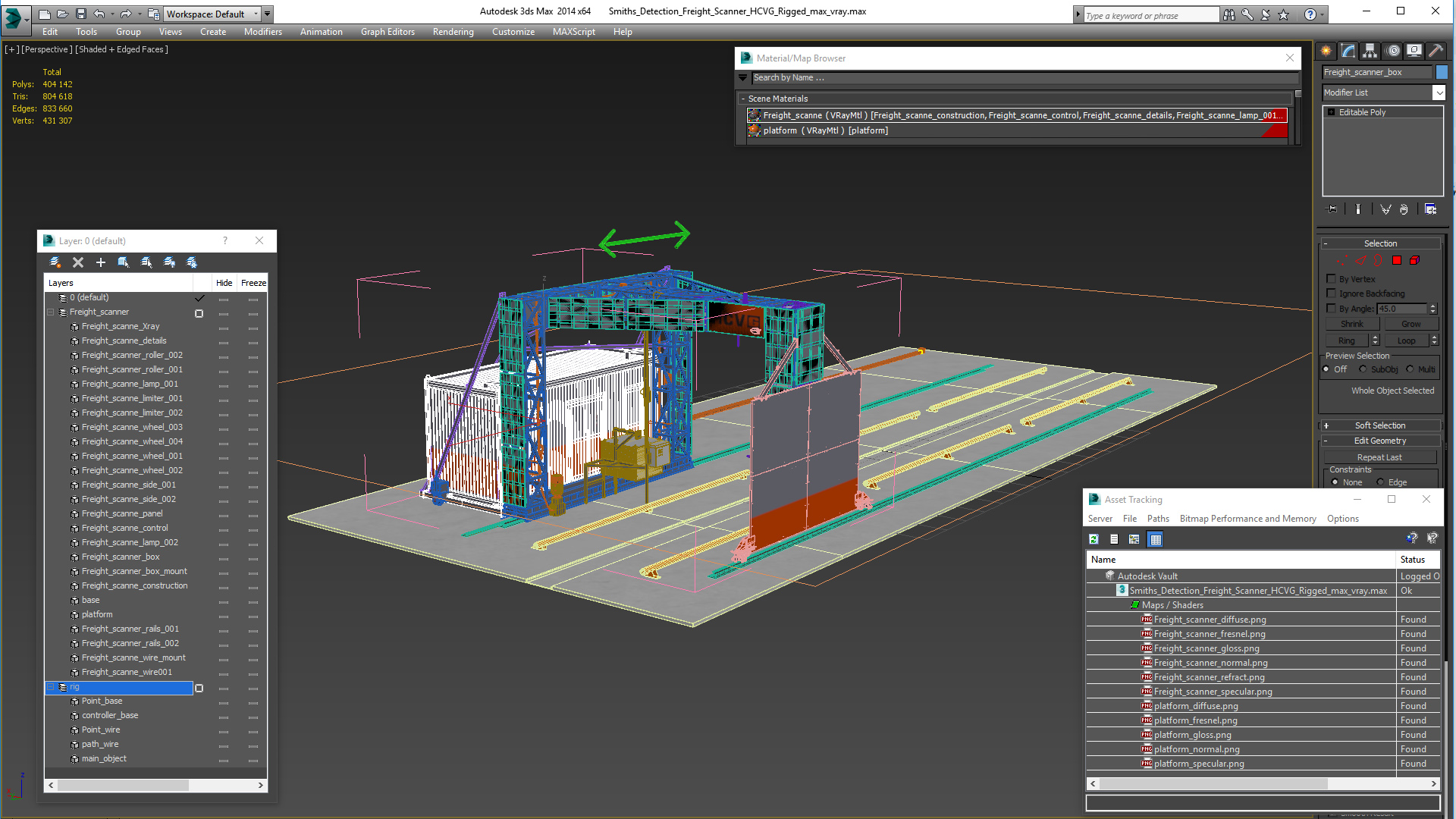 Smiths Detection Freight Scanner HCVG Rigged is a high quality, photo real 3d model that will enhance detail and realism to any of your rendering projects. The model has a fully textured, detailed design that allows for close-up renders, and was originally modeled in 3ds Max 2020 and rendered with V-Ray. Renders have no postprocessing!