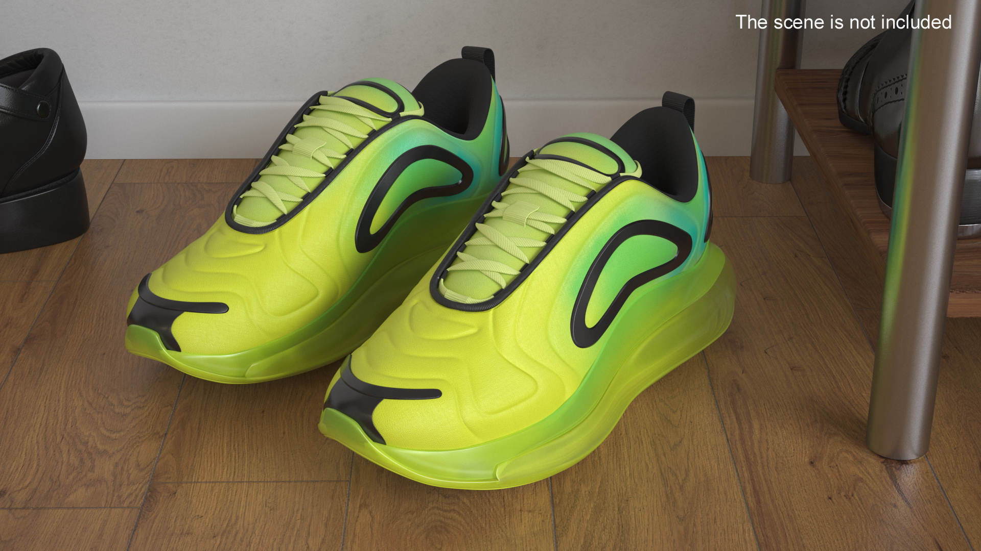 Sneakers Dynamic Air 720 Volt Green is a 3d model of variation of the Nike Air Max 720, featuring a unique design focused on enhanced comfort and performance.