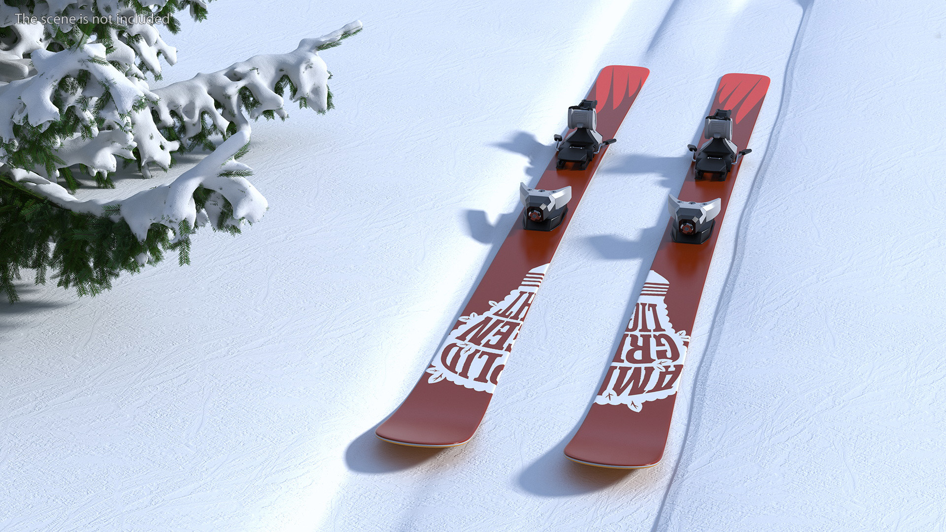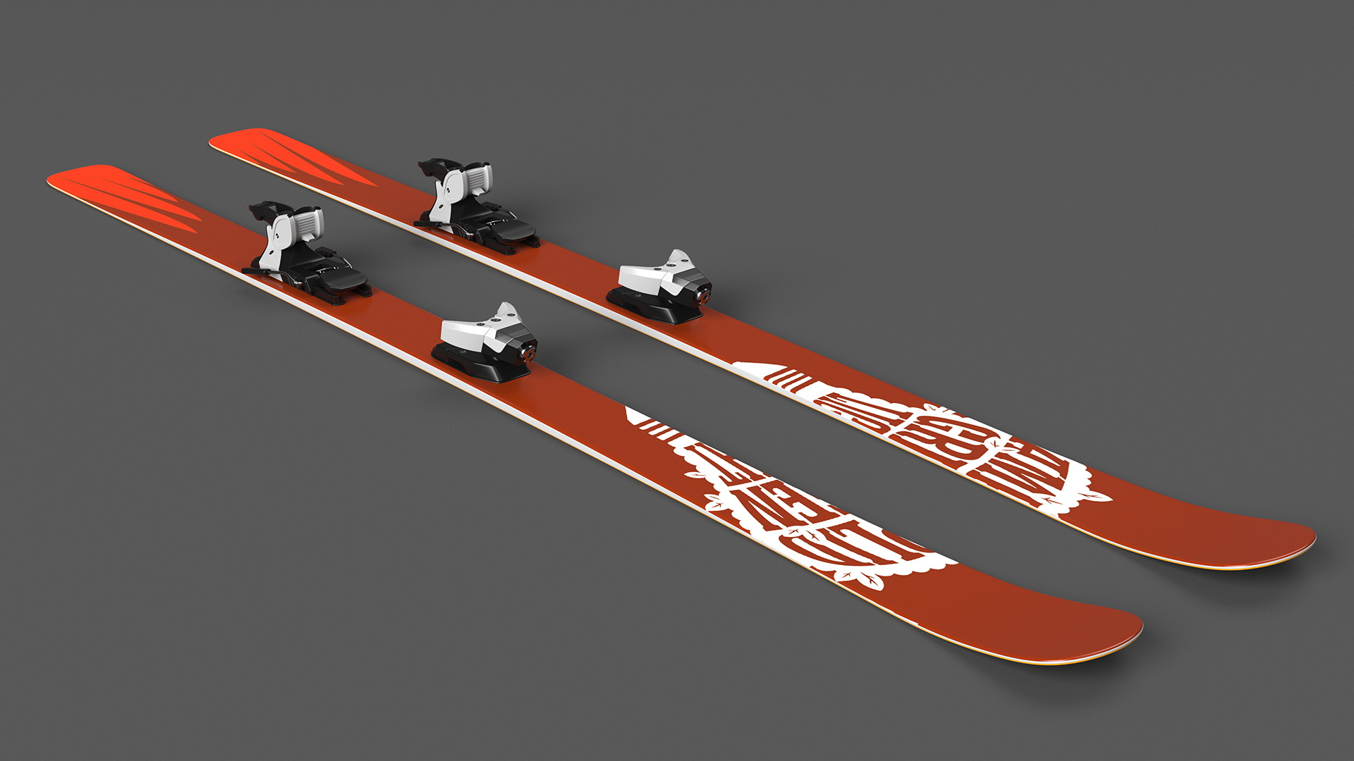 Snow Ski System with Ski Bindings is a three-dimensional model of pair of snow skis which are long and narrow devices which used for skiing on snow, and which are well known narrow strips of special semi-rigid material worn underfoot to glide over snow.