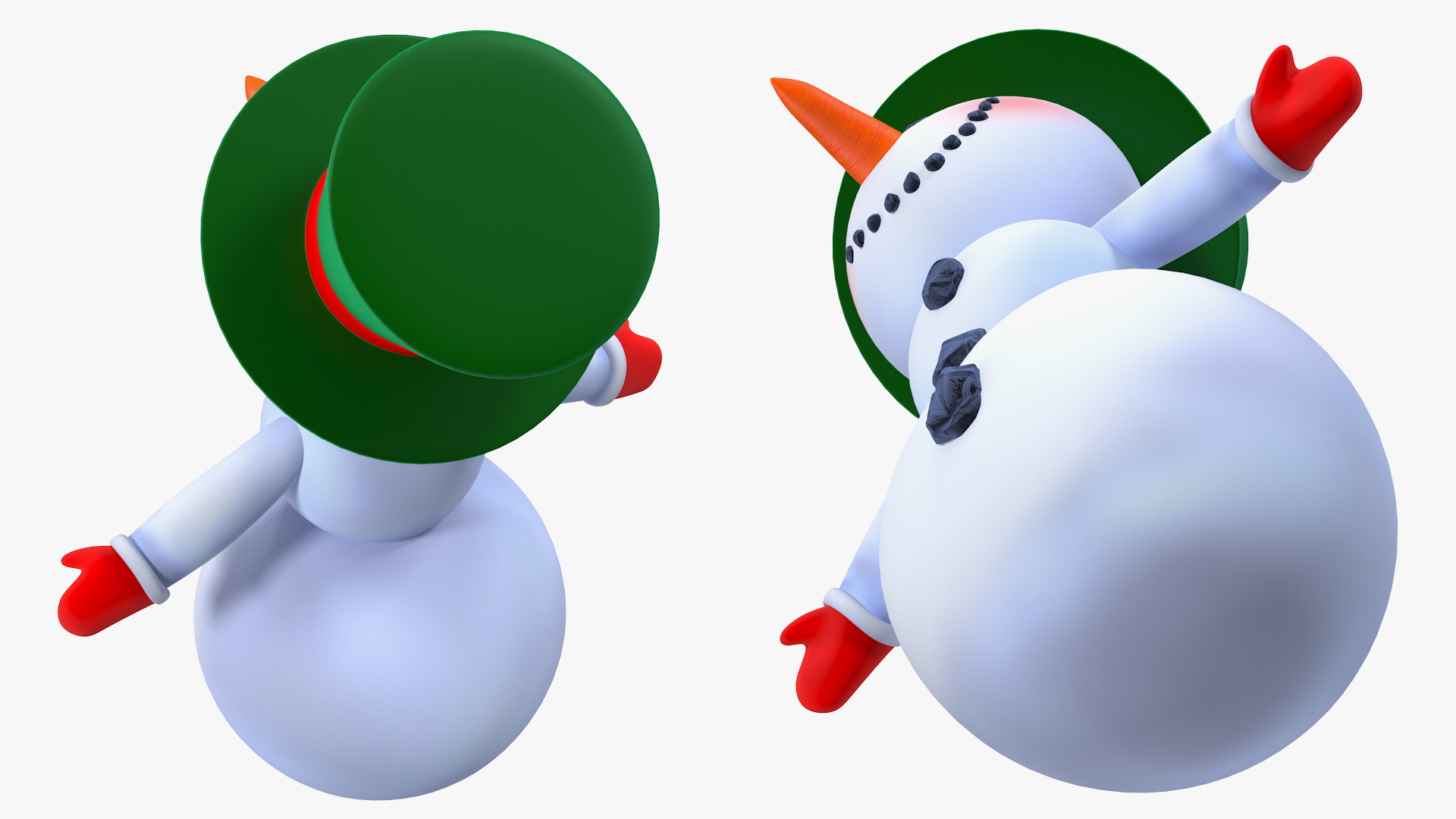 Snowman T-Pose cute snow figurine with green cylinder hat.