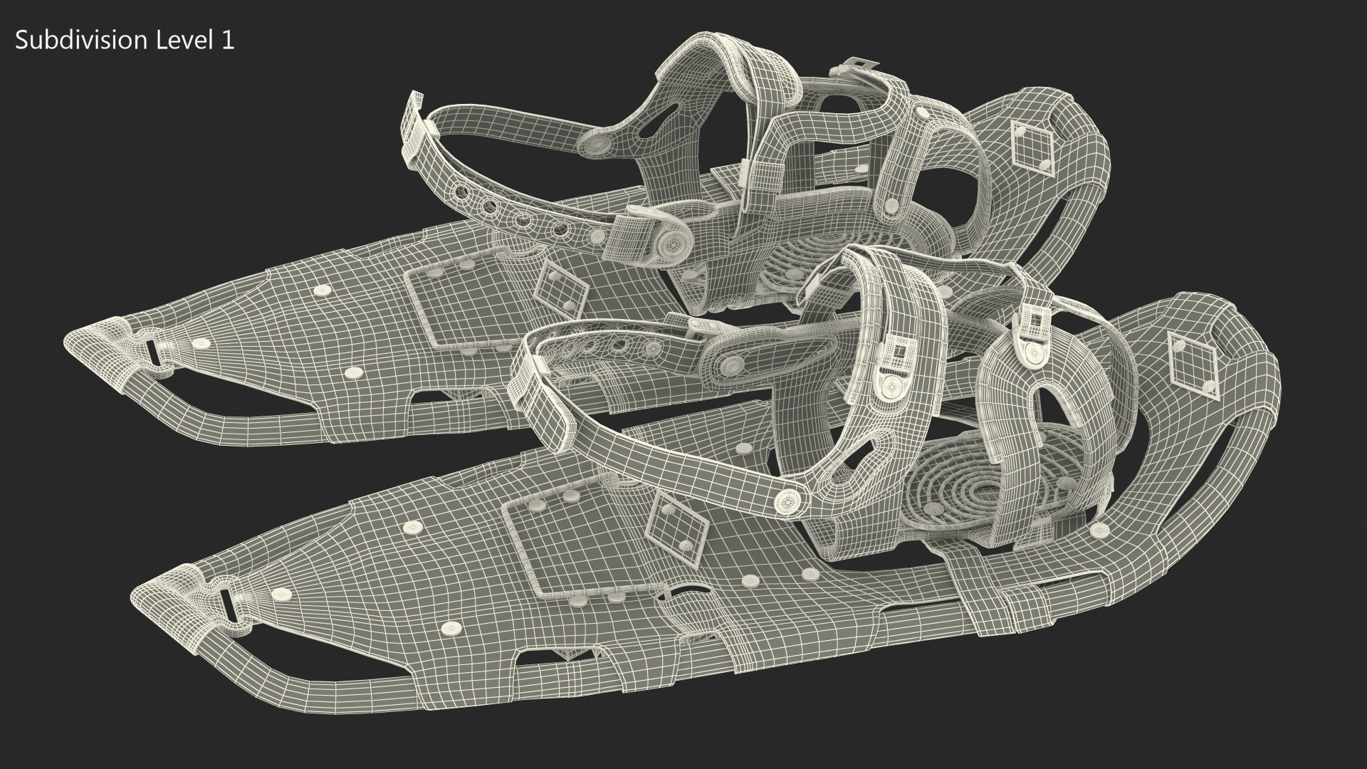 Snowshoes Atlas Yellow is a three-dimensional model of all terrain tourist snow shoes which are mountain snow-shoes type equipment with spring-loaded suspension