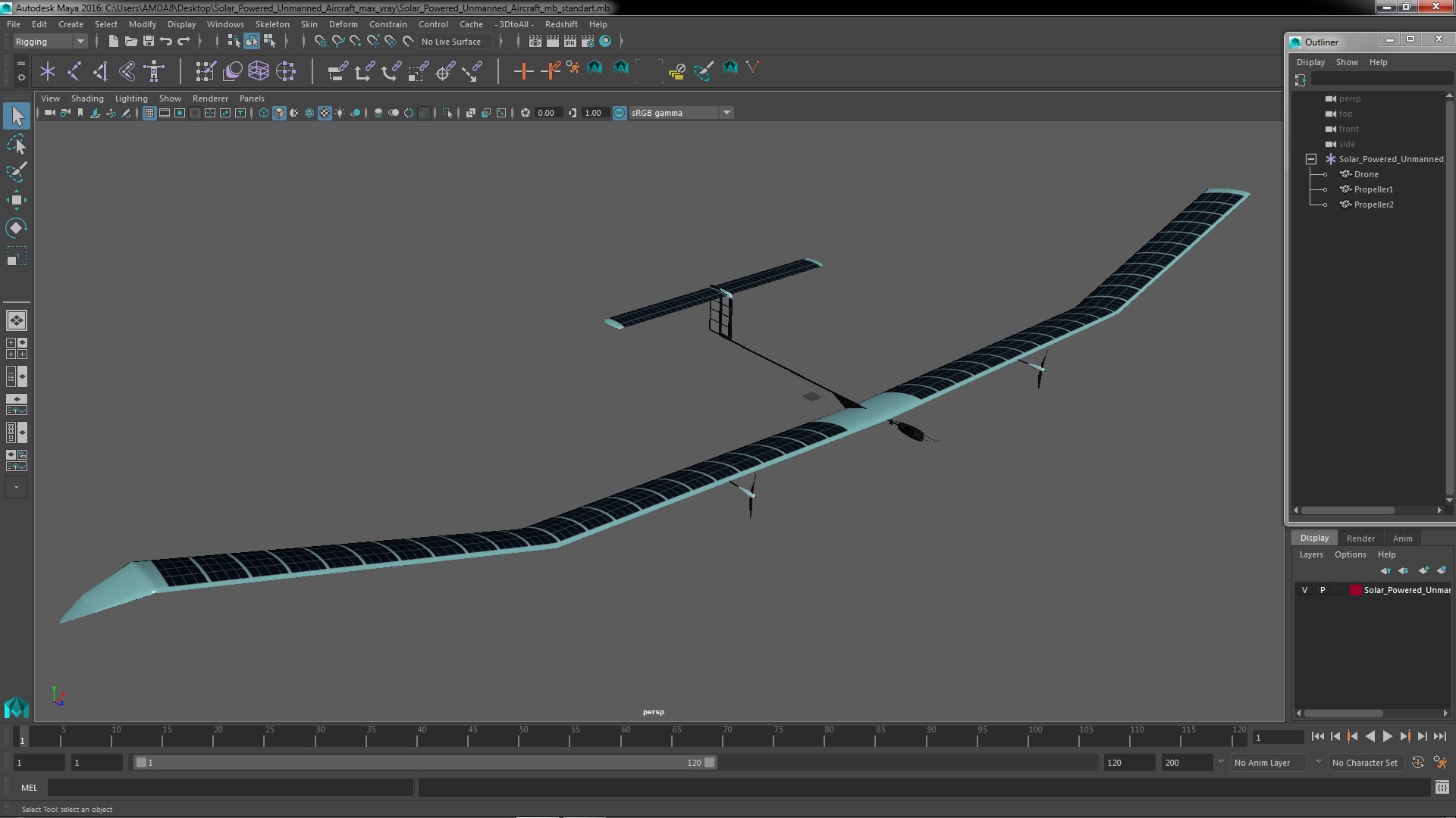 Solar Powered Unmanned Aircraft is a 3d model of drone designed to fly at high altitudes for extended periods of time using solar panels.
