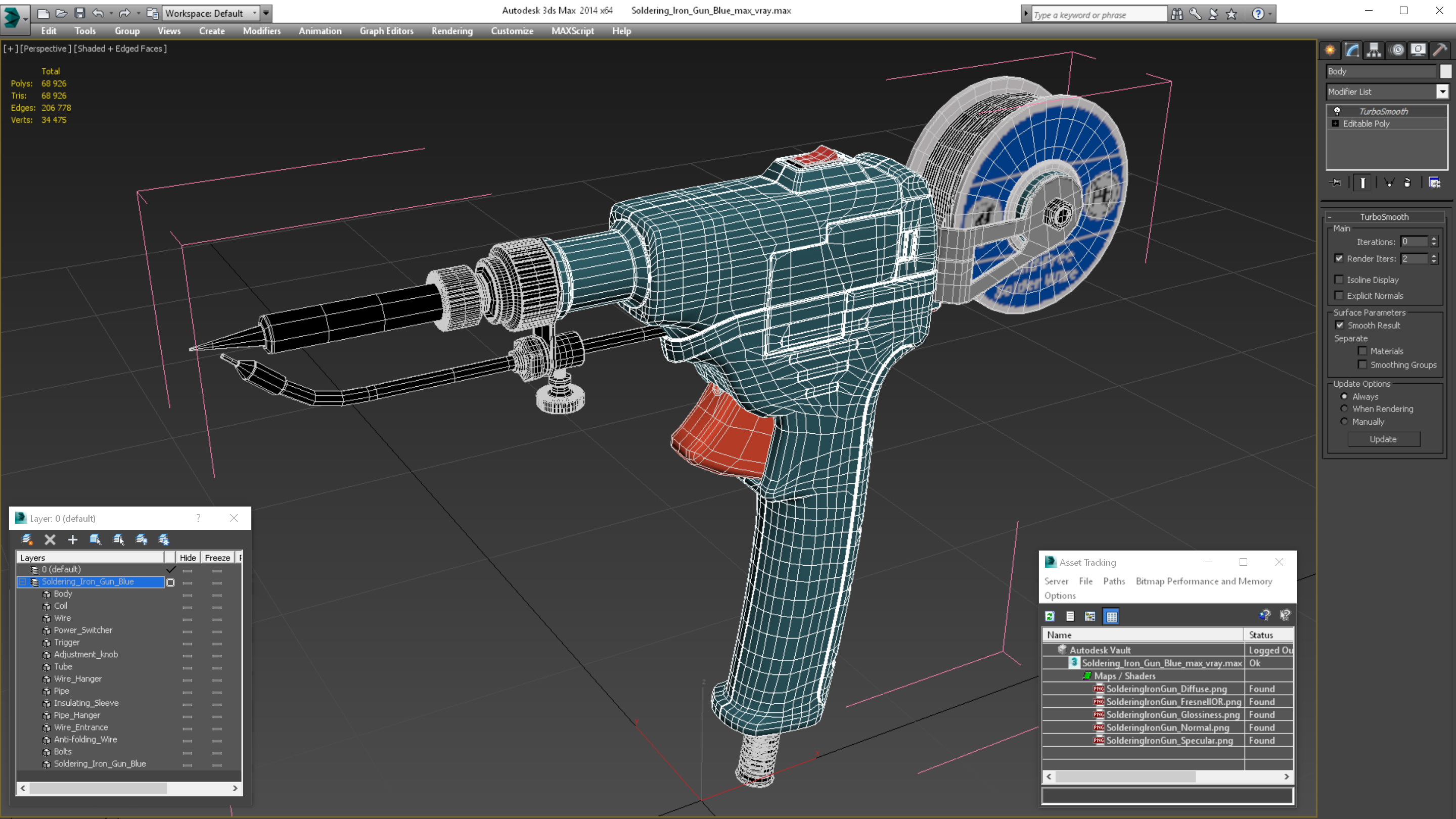 Soldering Iron Gun Blue is a three-dimensional model of a special soldering instrument, which is adjustable solder iron appliance.
