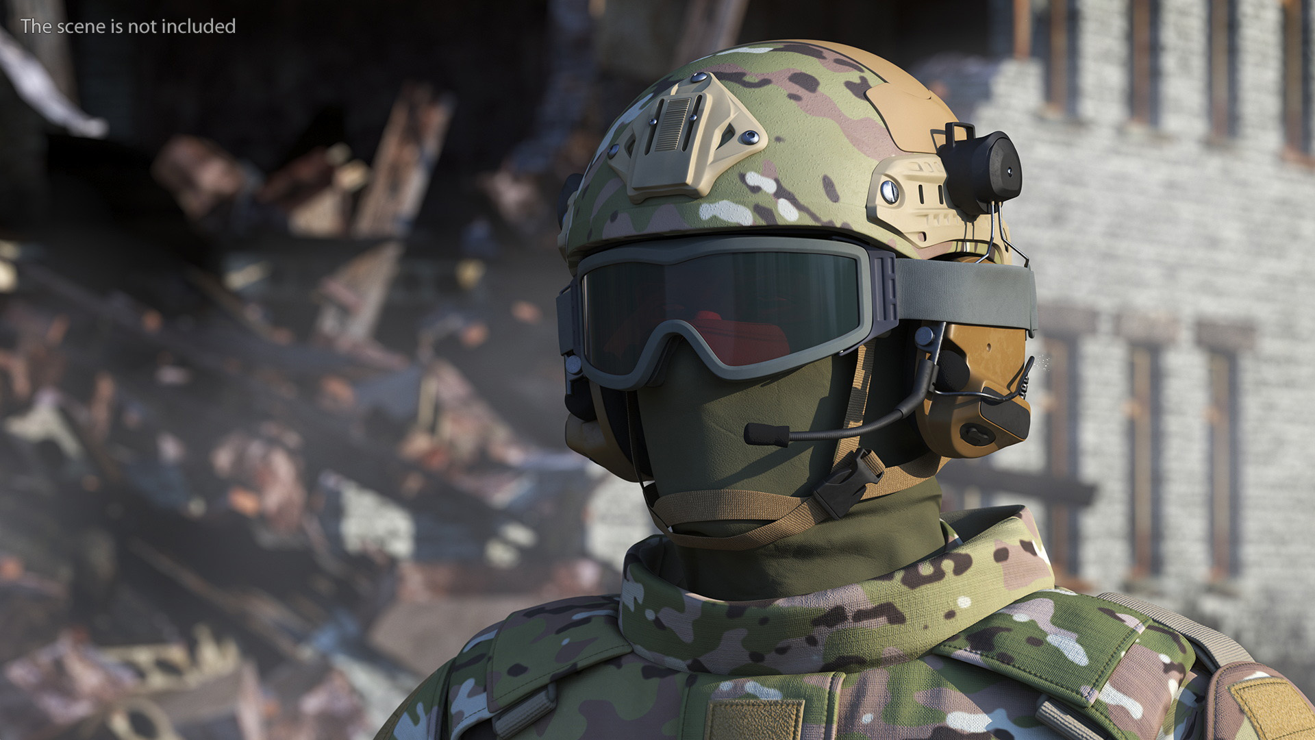 Soldier in Green Tactical Gear with Goggles Standing is a high quality, photo real 3d model that will enhance detail and realism to any of your rendering projects. The model has a fully textured, detailed design that allows for close-up renders, and was originally modeled in 3ds Max 2020 and rendered with V-Ray. Renders have no postprocessing!