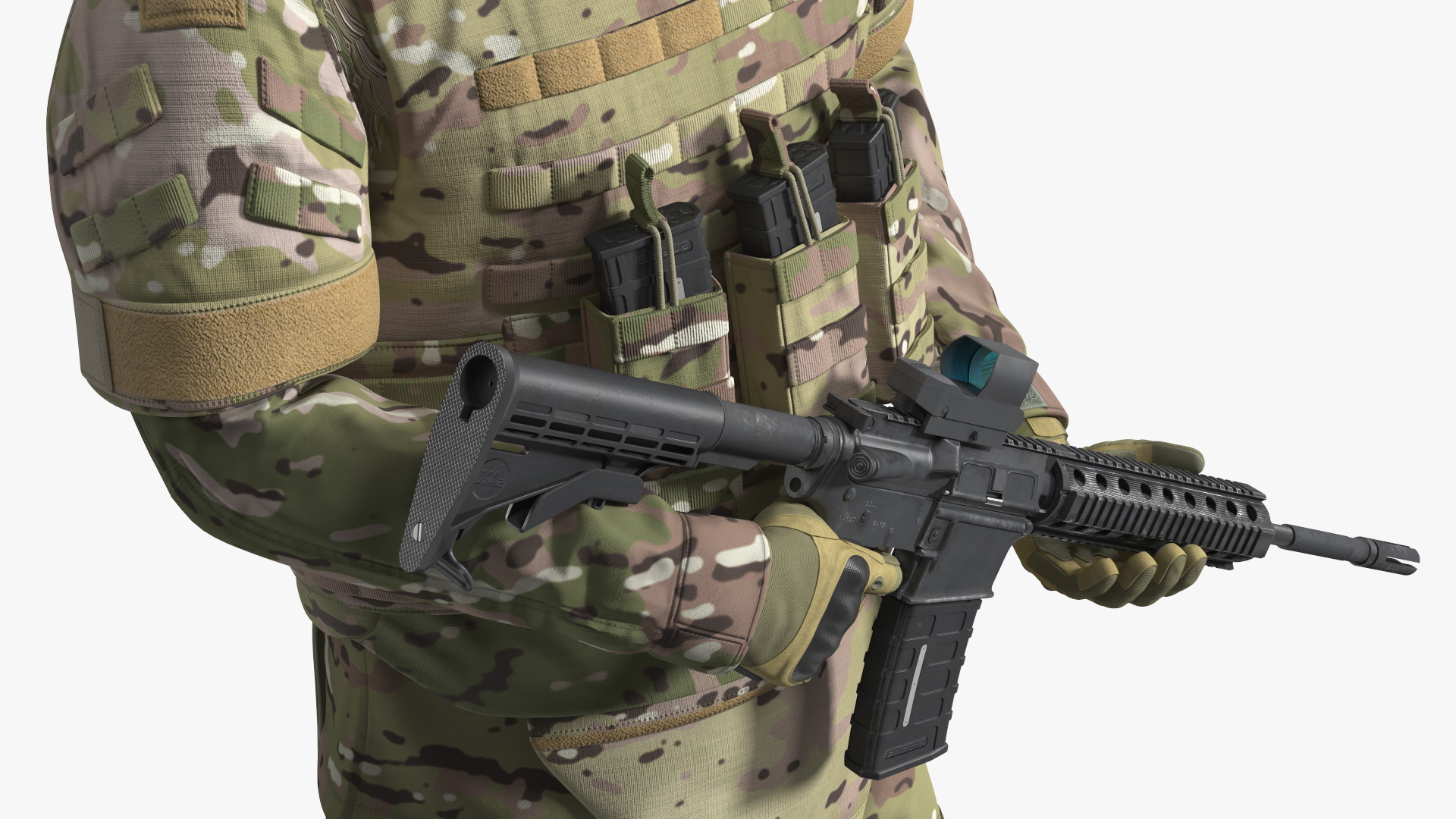 Soldier in Green Tactical Gear with Goggles Standing Fur is a 3d model of a military individual equipped for operations in various terrains, wearing green tactical gear and protective goggles while standing in a ready posture.