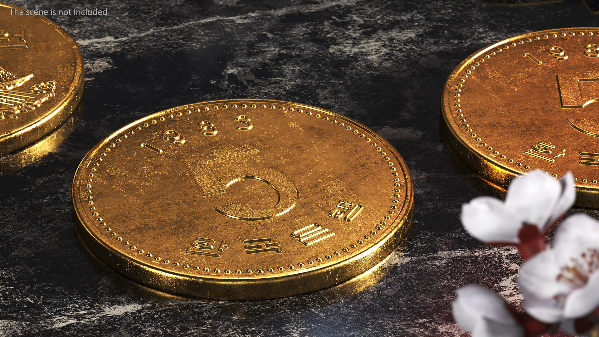 South Korea 5 Won 1983 Coin is a high quality, photo real 3d model that will enhance detail and realism to any of your rendering projects. The model has a fully textured, detailed design that allows for close-up renders, and was originally modeled in 3ds Max 2020 and rendered with V-Ray. Renders have no postprocessing!
