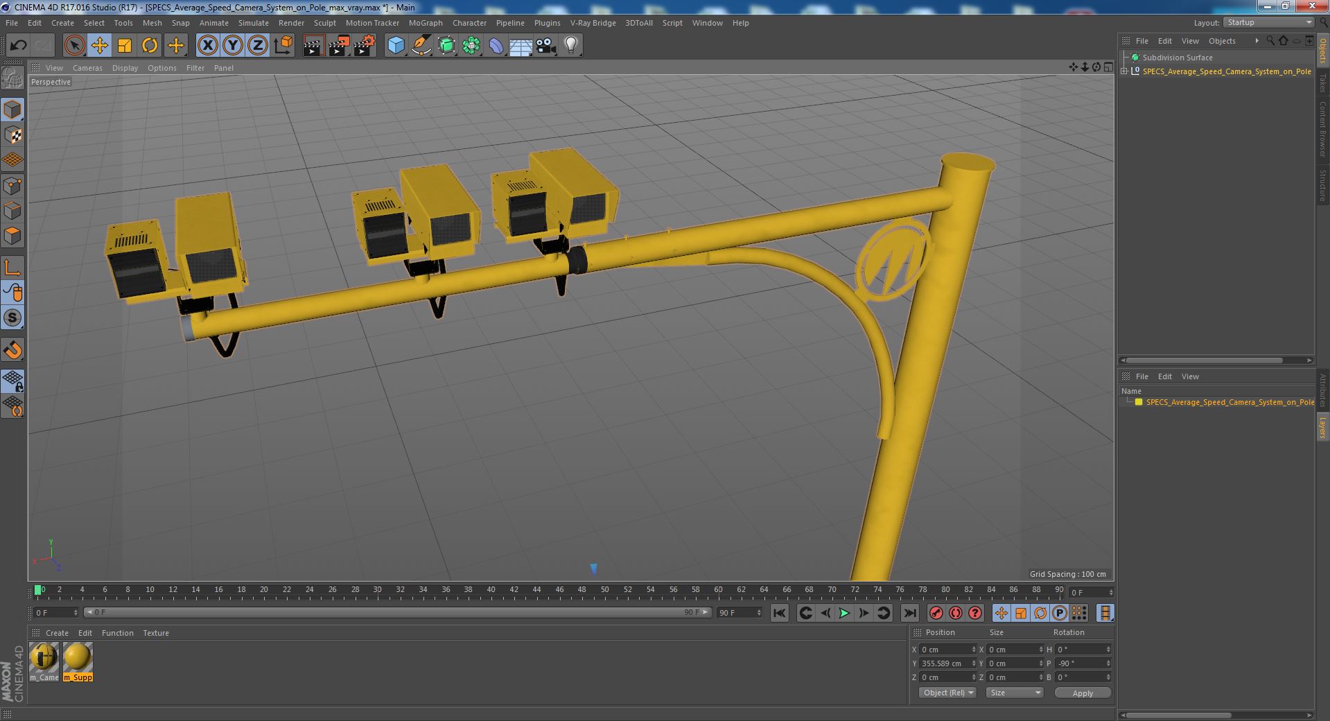 SPECS Average Speed Camera System on Pole is a high quality, photo real 3d model that will enhance detail and realism to any of your rendering projects. The model has a fully textured, detailed design that allows for close-up renders, and was originally modeled in 3ds Max 2020 and rendered with V-Ray. Renders have no postprocessing!