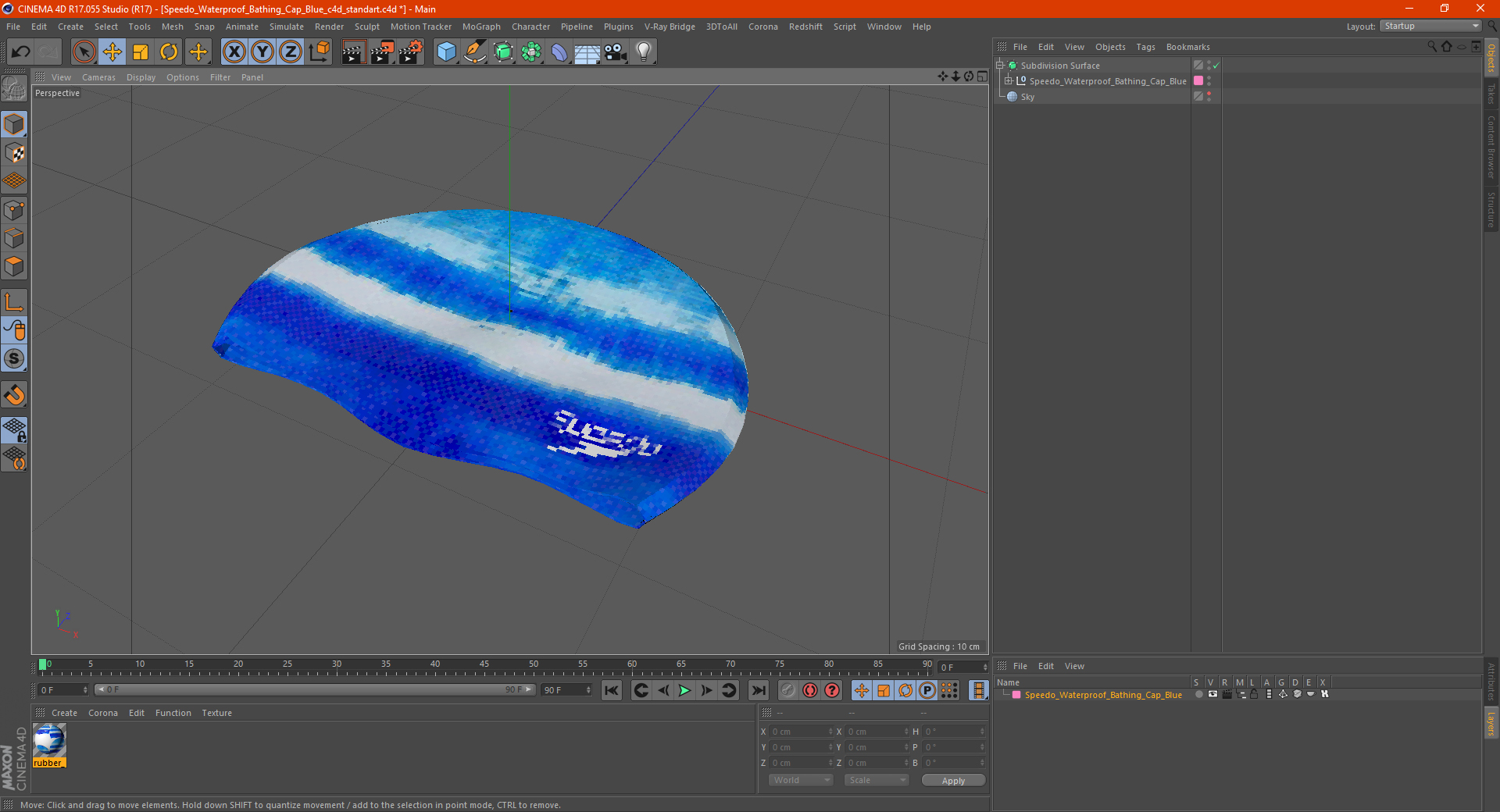 Speedo Waterproof Bathing Cap Blue is a high quality, photo real 3d model that will enhance detail and realism to any of your rendering projects. The model has a fully textured, detailed design that allows for close-up renders, and was originally modeled in 3ds Max 2020 and rendered with V-Ray. Renders have no postprocessing!