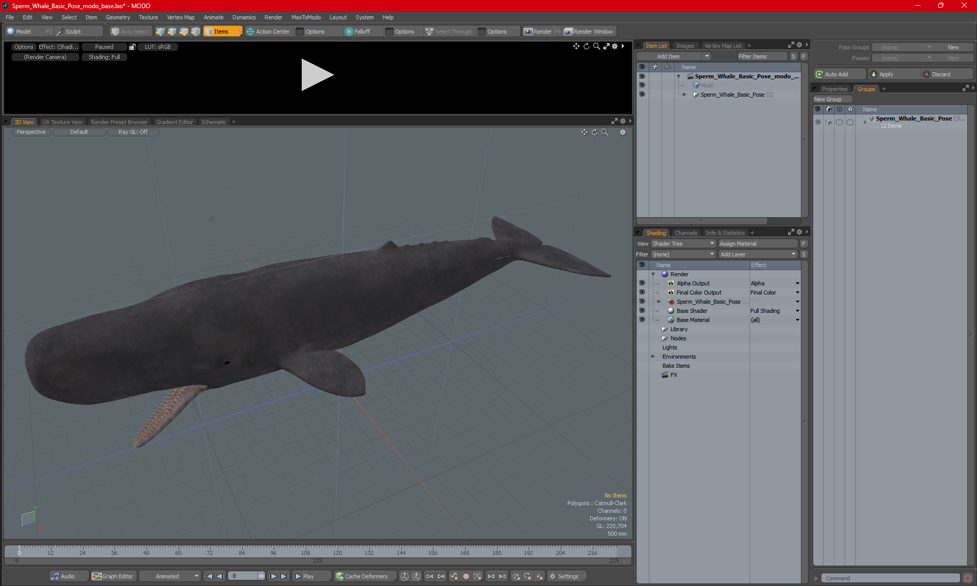 Sperm Whale Basic Pose is a high quality, photo real 3d model that will enhance detail and realism to any of your rendering projects. The model has a fully textured, detailed design that allows for close-up renders, and was originally modeled in 3ds Max 2020 and rendered with V-Ray. Renders have no postprocessing!