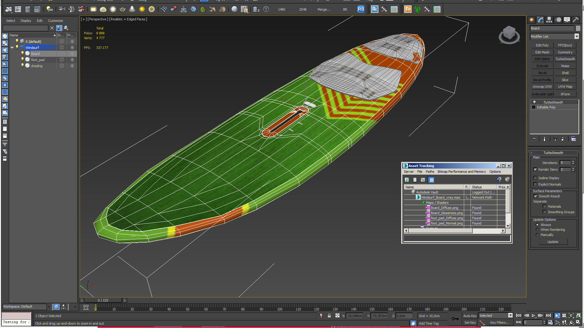 Sport Windsurf Board is a high quality, photo real 3d model that will enhance detail and realism to any of your rendering projects. The model has a fully textured, detailed design that allows for close-up renders, and was originally modeled in 3ds Max 2020 and rendered with V-Ray. Renders have no postprocessing!