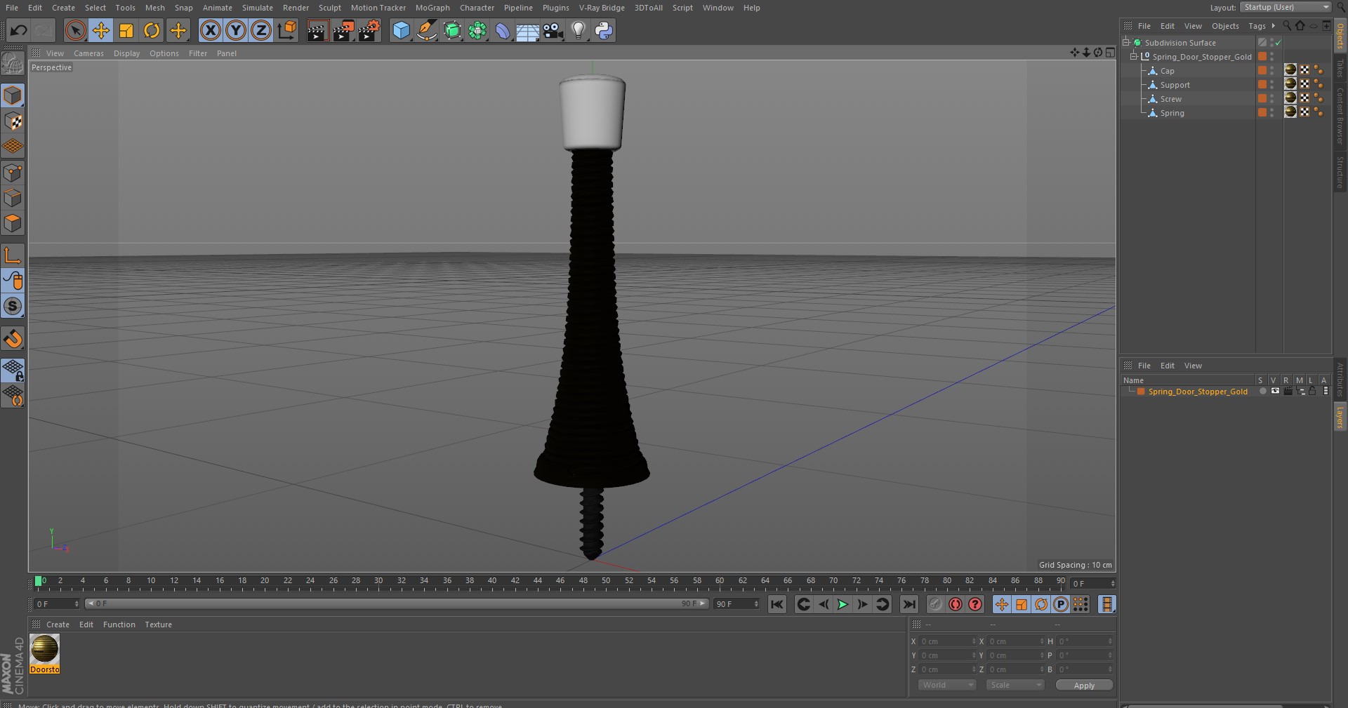 Spring Door Stopper Gold is a high quality, photo real 3d model that will enhance detail and realism to any of your rendering projects. The model has a fully textured, detailed design that allows for close-up renders, and was originally modeled in 3ds Max 2020 and rendered with V-Ray. Renders have no postprocessing!
