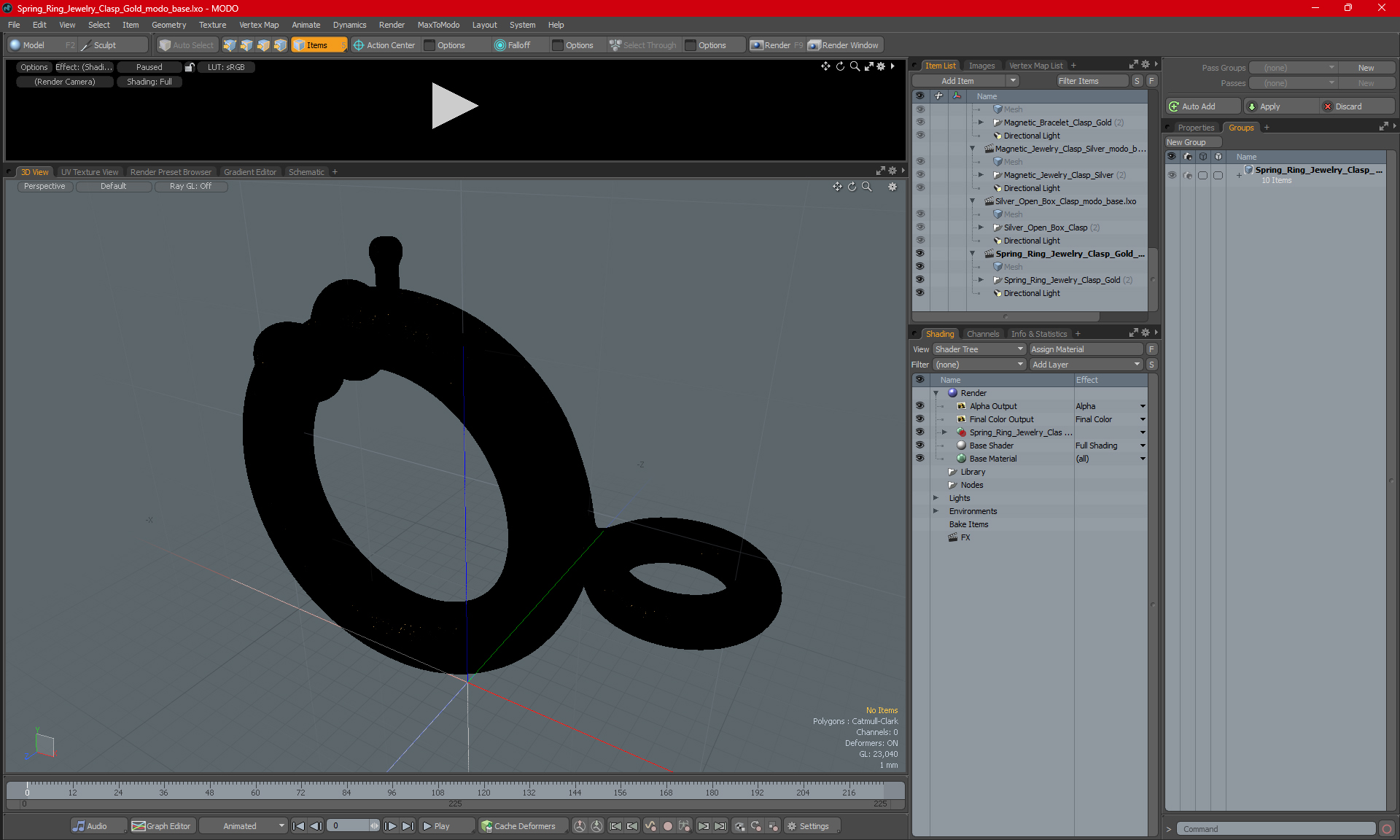 Spring Ring Jewelry Clasp Gold is a high quality, photo real 3d model that will enhance detail and realism to any of your rendering projects. The model has a fully textured, detailed design that allows for close-up renders, and was originally modeled in 3ds Max 2020 and rendered with V-Ray. Renders have no postprocessing!