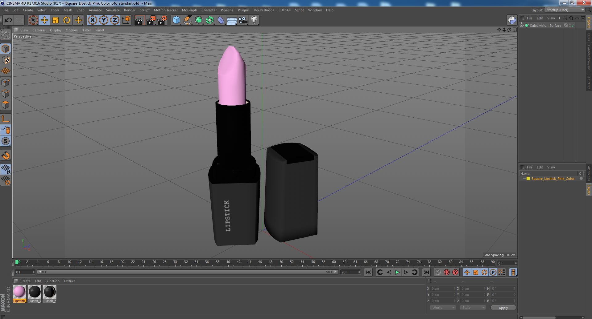 Square Lipstick Pink Color is a three-dimensional model of widespread, popular and well known cosmetic product which can be applied to the lips to add color and enhance their appearance.