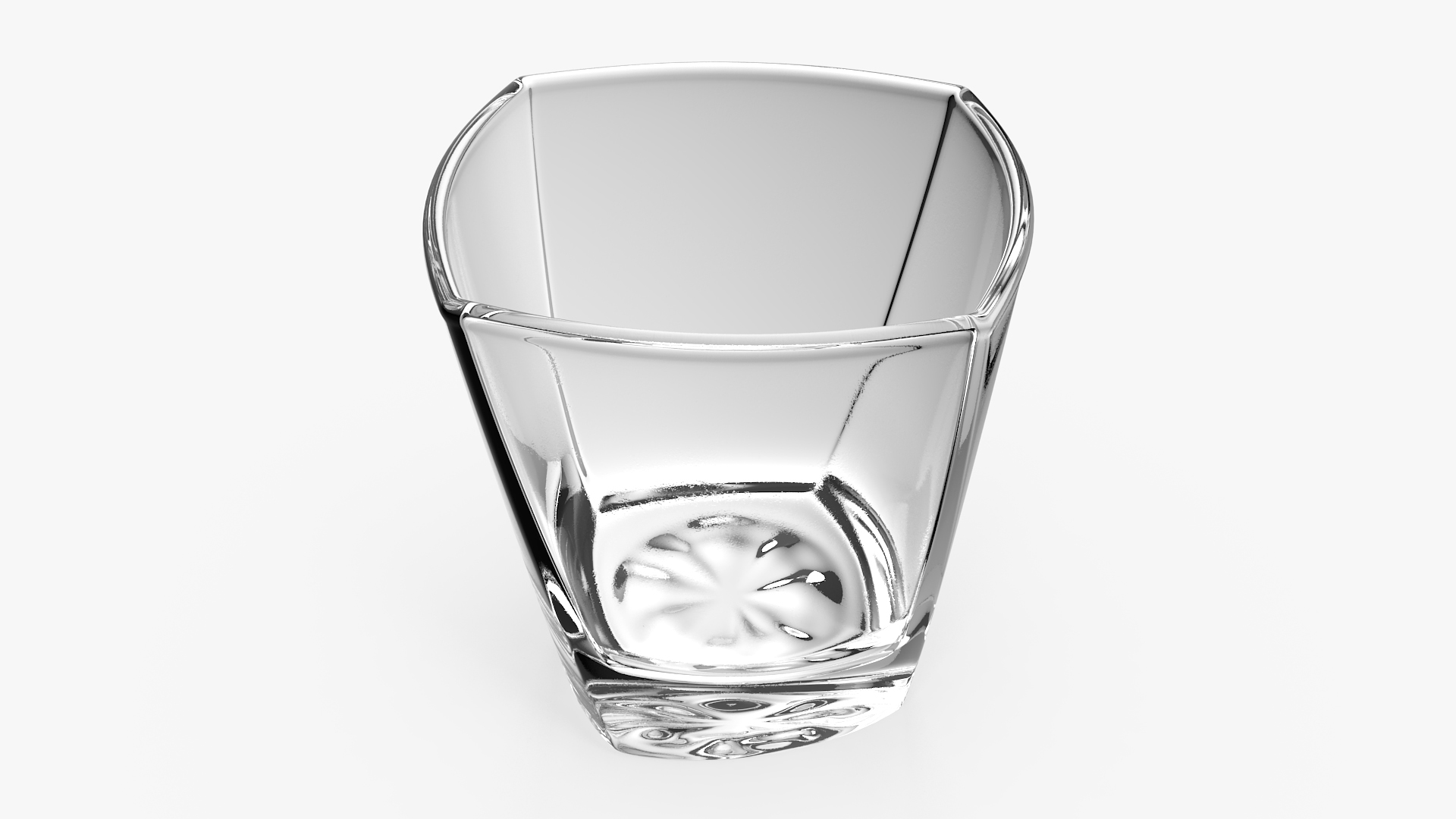 Square Twisted Rocks Glass is a 3D model of old fashioned, ancient style, vintage faceted shot glass which is the crystal design utensil, and which is designed for alcoholic beverages.