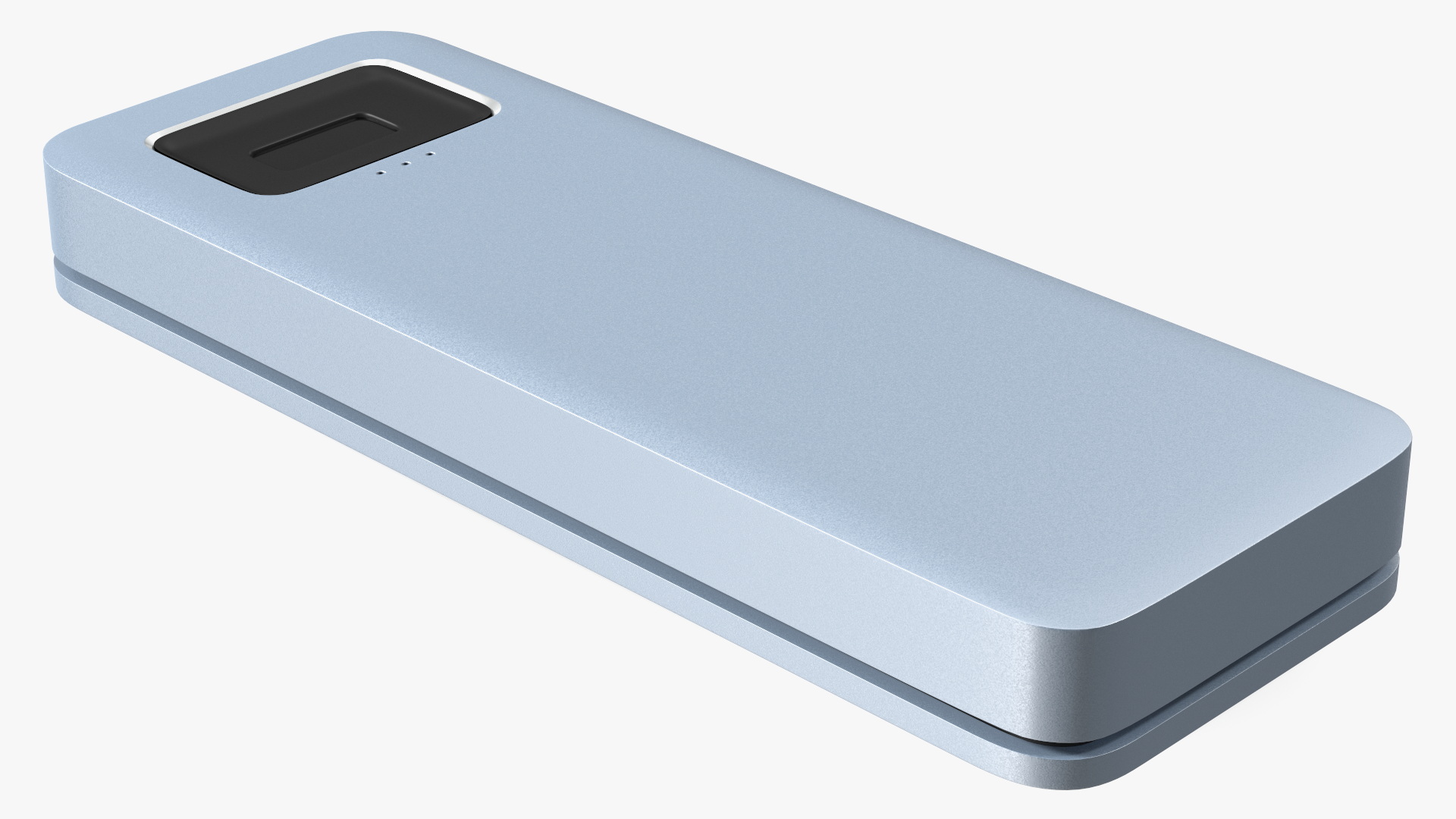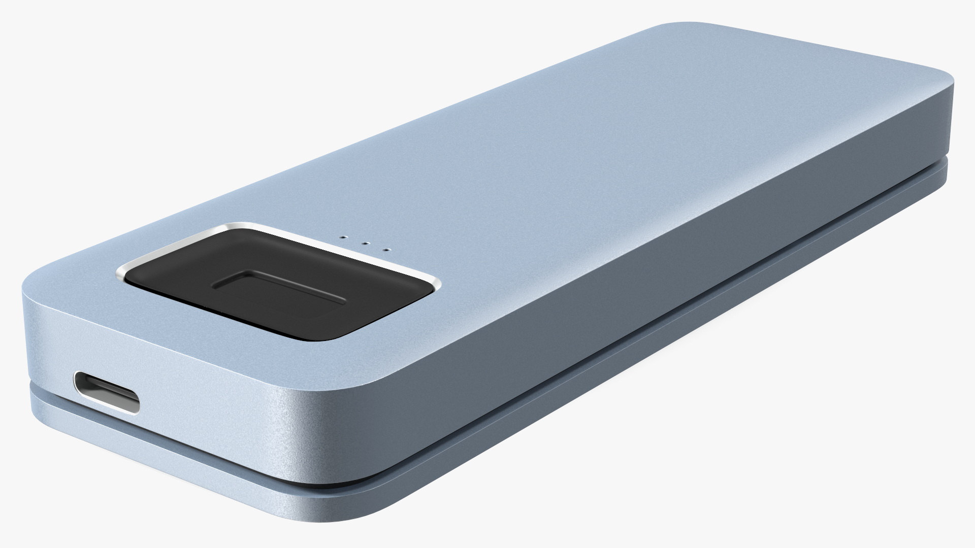 SSD Drive Fingerprint Scanner Protection is a 3d model of an external hard drive that features a built-in fingerprint scanner for added security.
