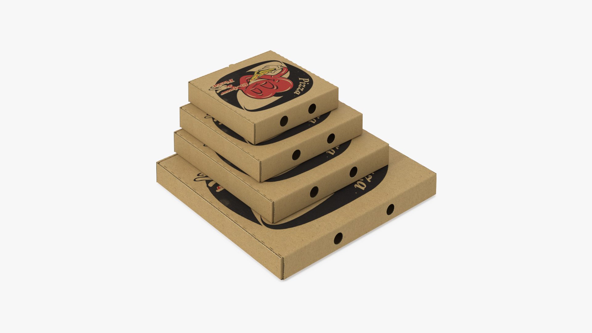 Stacked Pizza Boxes with Custom Logo is a 3d model of a set of pizza boxes neatly stacked, featuring a customizable logo design for branding purposes, ideal for food service and marketing applications.