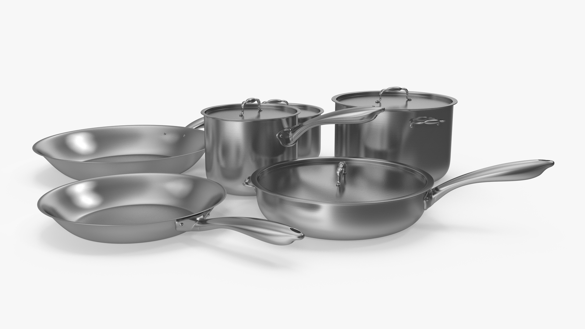 Stainless Kitchen Pot Set 6 piece is a 3d model of containers used for cooking stews, soups, and other food.