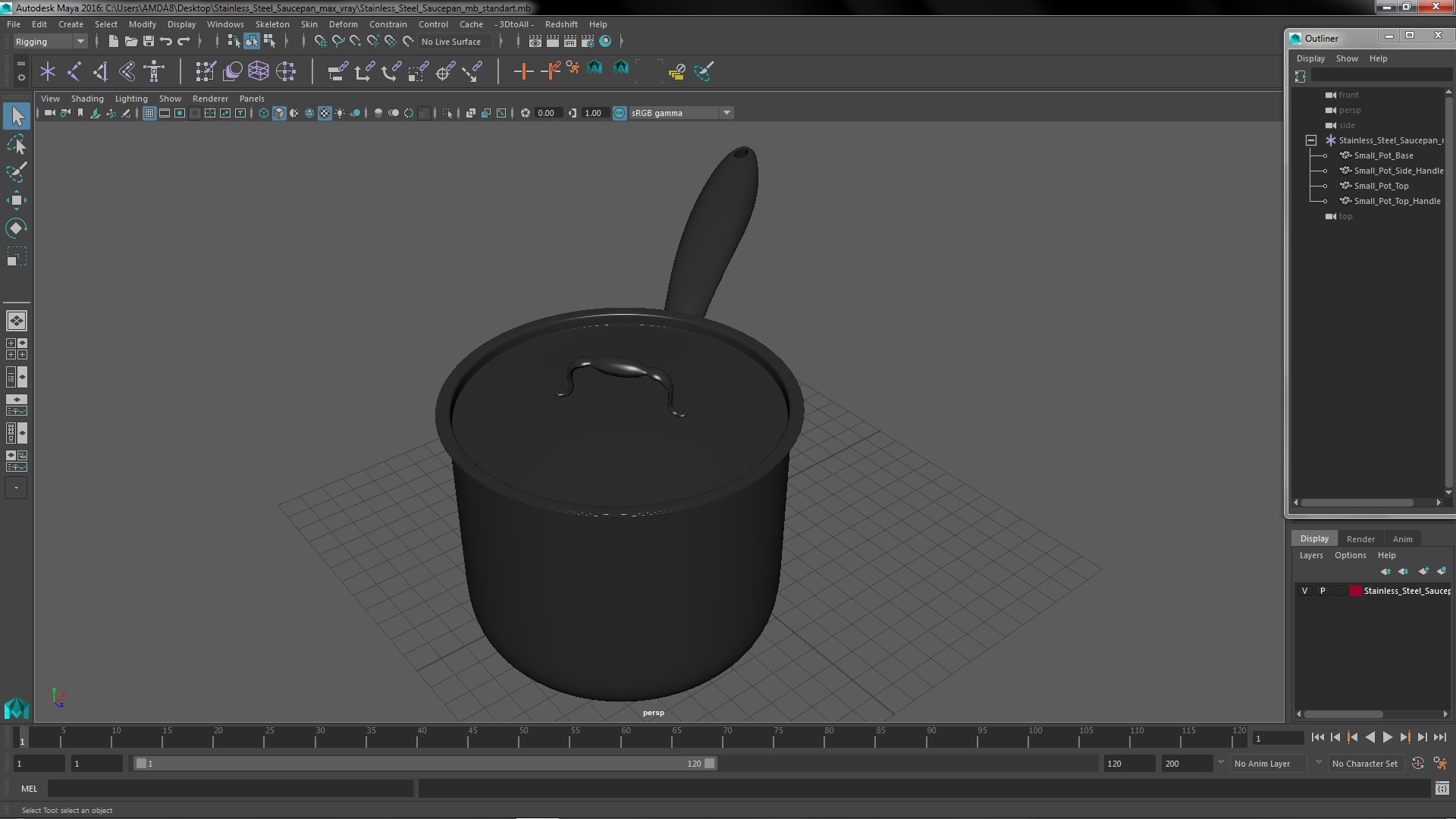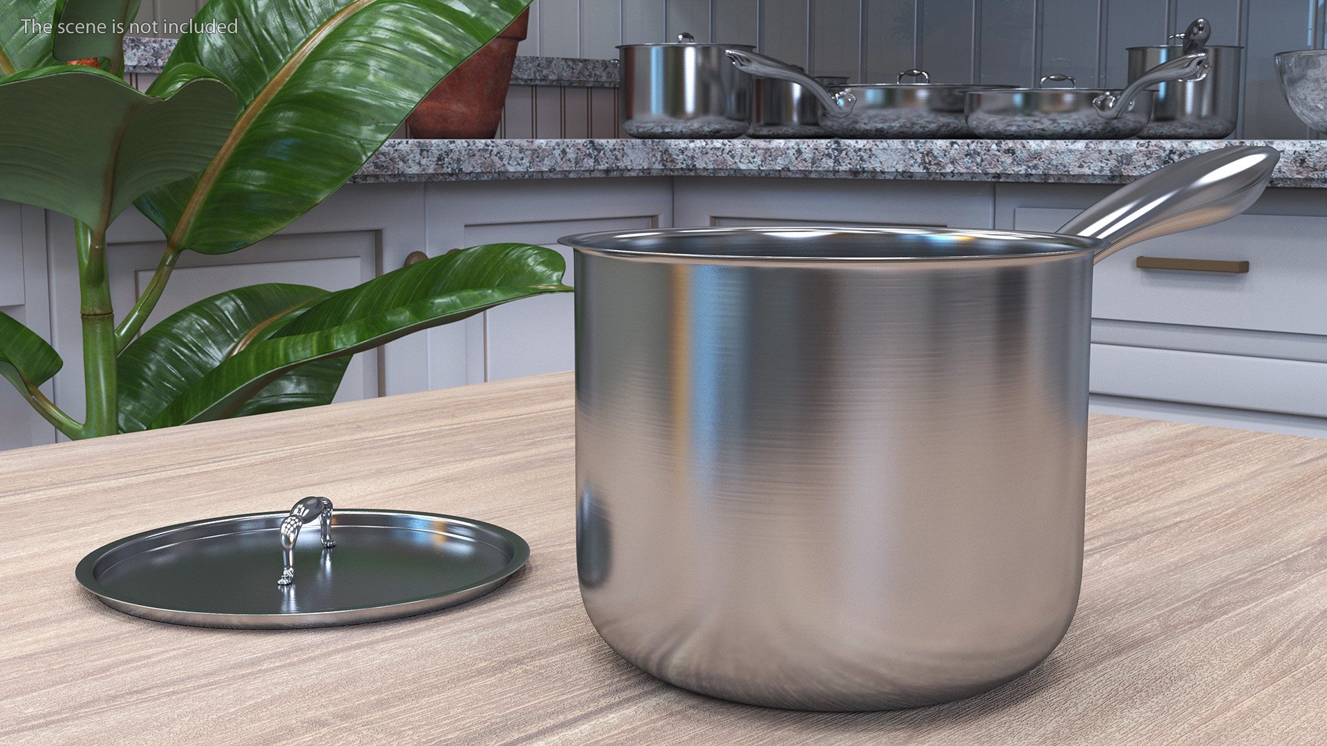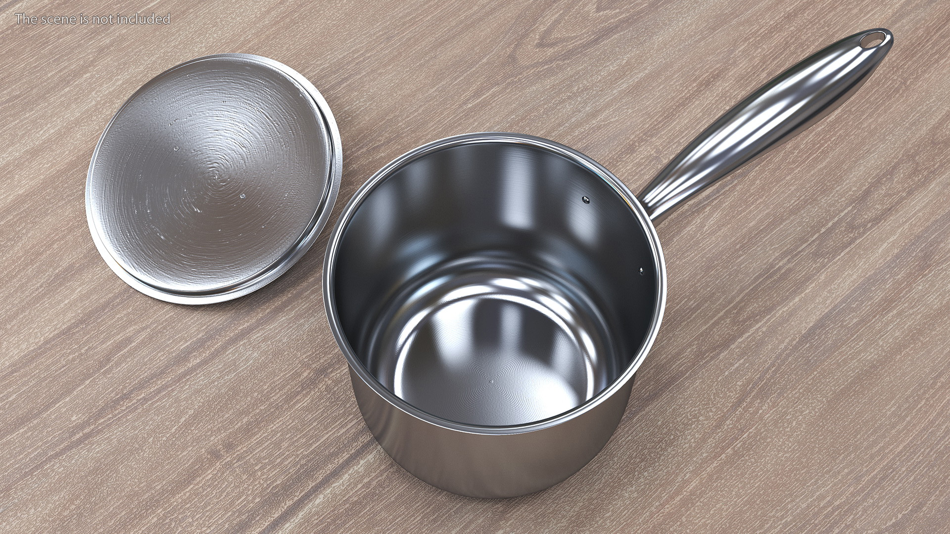 Stainless Steel Saucepan is a 3D model of cooking pot with a long handle and a metal lid that used for cooking or heating sauces, liquids, and small portions of food.