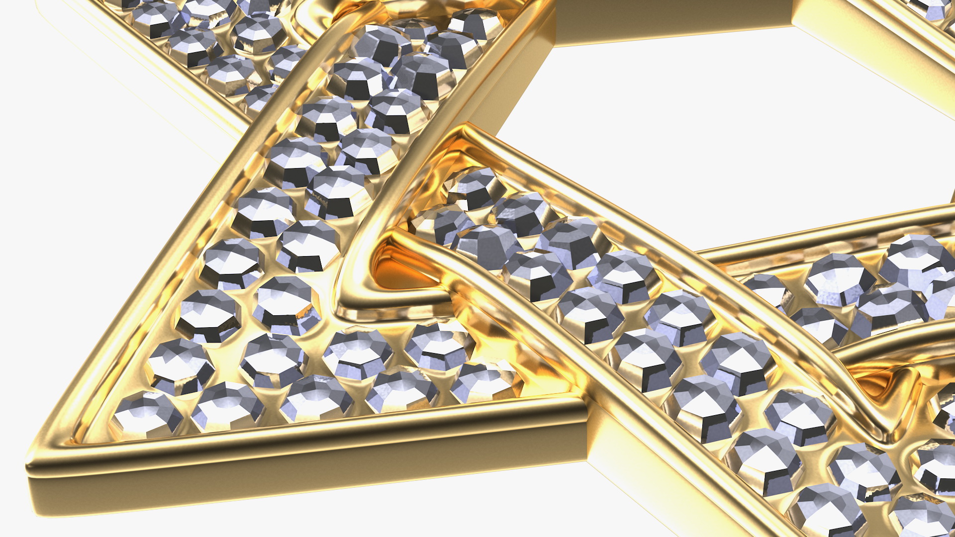 Star of David with Diamonds Gold jewelry decoration in shape of the Shield of David (Mogein Dovid, Magen David, or Mogen Dovid) traditional symbol of modern Jewish identity and Judaism.