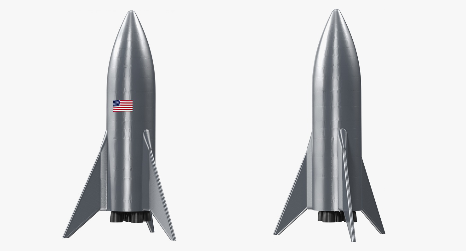 Starship spaceship first stage of the fully-reusable launch vehicle or long-duration spacecraft.