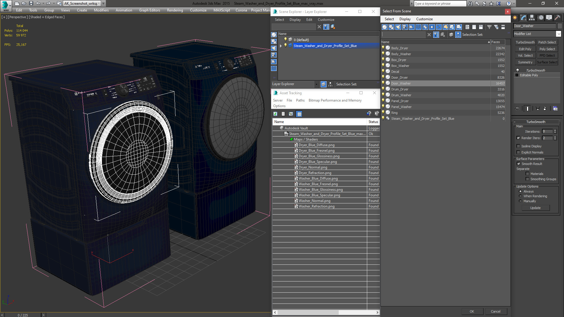 Steam Washer and Dryer Profile Set Blue is a three-dimensional model of set of front-load drying and washing machines, which designed for laundry operations with clothes, towels, fabrics, textile items and more.