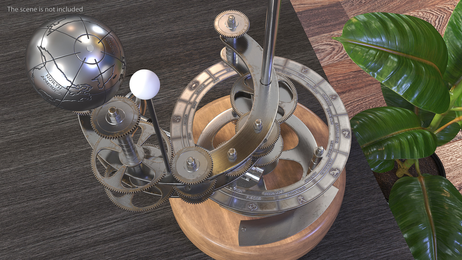 Steel Antique Orrery Solar System Rigged is a 3D model of vintage (ancient or antique style) looking metal orrery with Sun planet and Earth planet, which is a popular educational metal gear accessory, which featured the solar system two main planets.