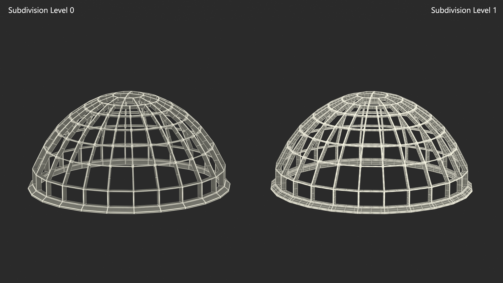 Steel Dome Structure is a 3D model of dome shaped glasshouse hut (house) which can be used as a architectural roof element, plant growing glasshouse or recreational garden constructions.