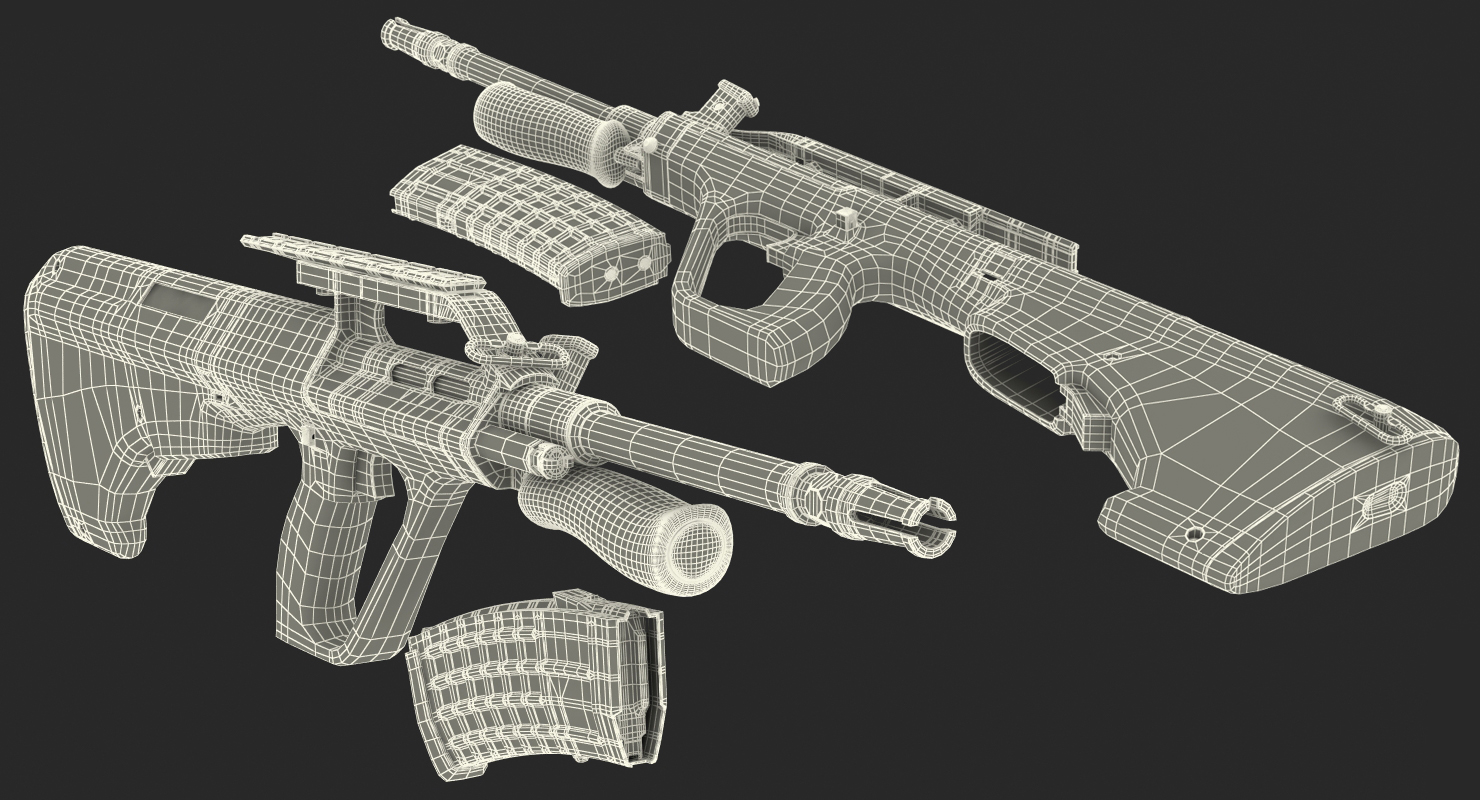 Steyr AUG A2 is a high quality, photo real 3d model that will enhance detail and realism to any of your rendering projects. The model has a fully textured, detailed design that allows for close-up renders, and was originally modeled in 3ds Max 2020 and rendered with V-Ray. Renders have no postprocessing!